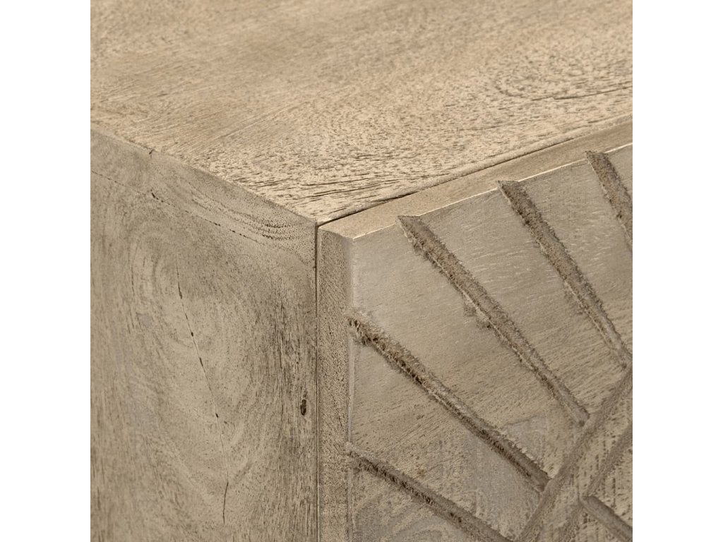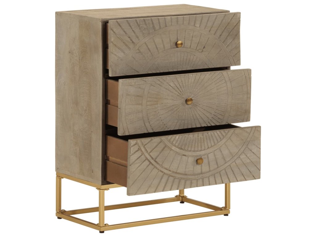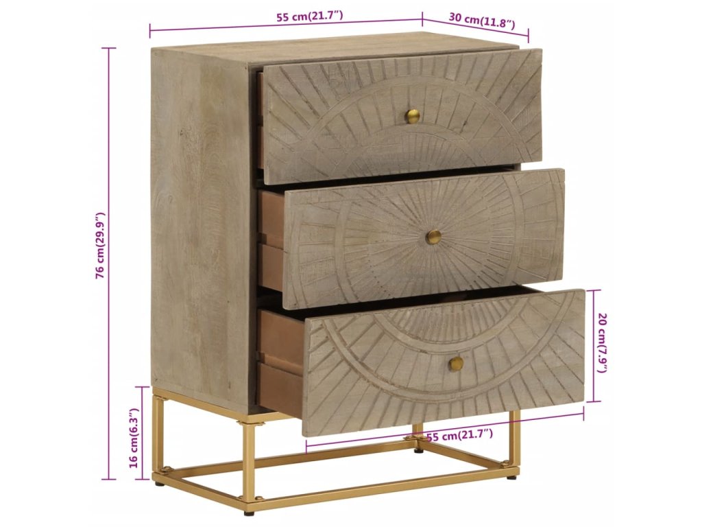 - Masivní mangovníkové dřevo: Masivní mangovníkové dřevo je pevné tropické tvrdé dřevo, ze kterého se vyrábí robustní nábytek. Krásná kresba dřeva propůjčuje každému kusu nábytku jeho jedinečný a od všech ostatních lehce odlišný vzhled. Skříňka je vyrobená z masivního mangovníkového dřeva, je tedy stabilní a odolná.
