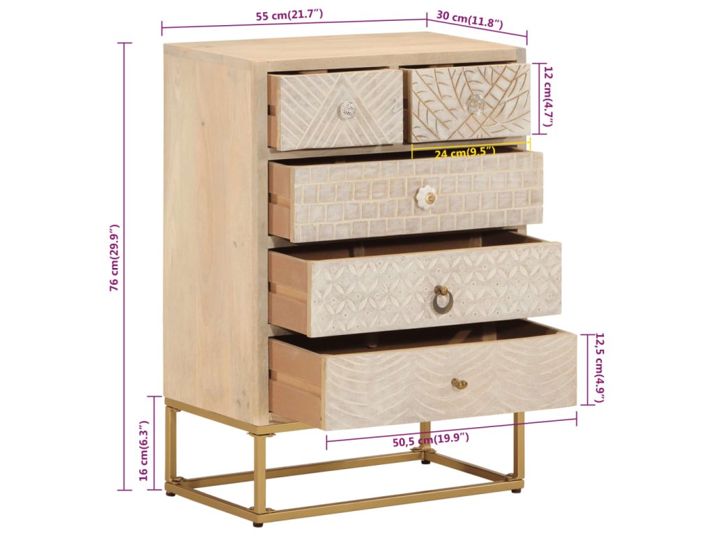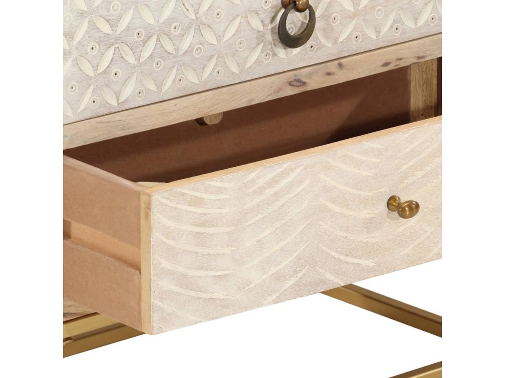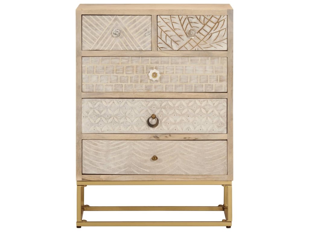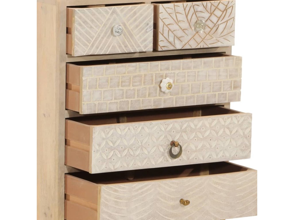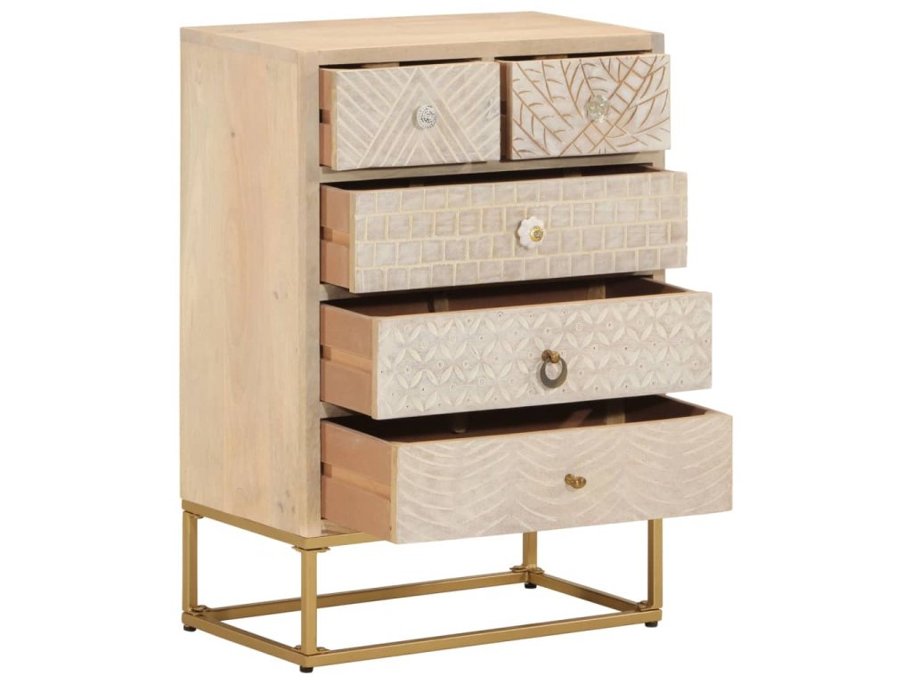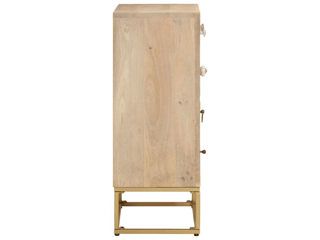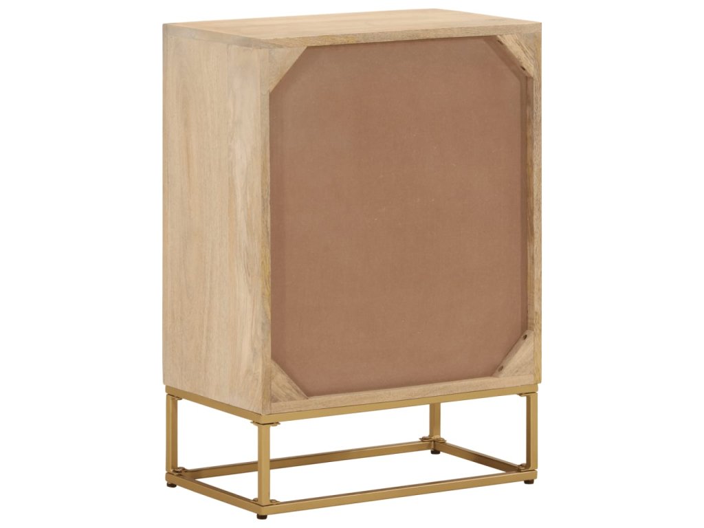 - Masivní mangovníkové dřevo: Masivní mangovníkové dřevo je pevné tropické tvrdé dřevo, ze kterého se vyrábí robustní nábytek. Krásná kresba dřeva propůjčuje každému kusu nábytku jeho jedinečný a od všech ostatních lehce odlišný vzhled. Skříňka je vyrobená z masivního mangovníkového dřeva, je tedy stabilní a odolná.