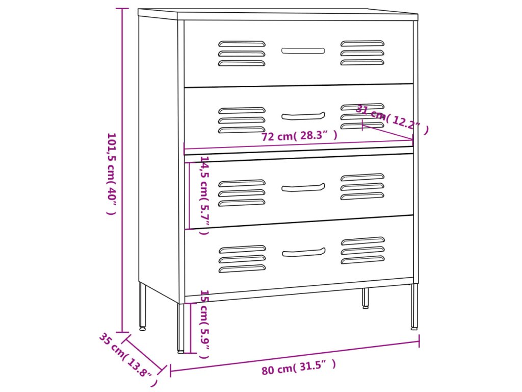 Odkládací skříňka má ocelovou konstrukci, takže toho hodně vydrží a má dlouhou životnost. Nivelační nohy ve spodní části umožňují nastavit výšku podle vašich potřeb. Zásuvky lze zcela vytáhnout, skvěle se proto hodí k přehlednému ukládání nejrůznějších maličkostí, které chcete mít vždy po ruce. Pojezdy zásuvek s kuličkovými ložisky zajišťují hladké otevírání a zavírání, a to i při těžším obsahu.