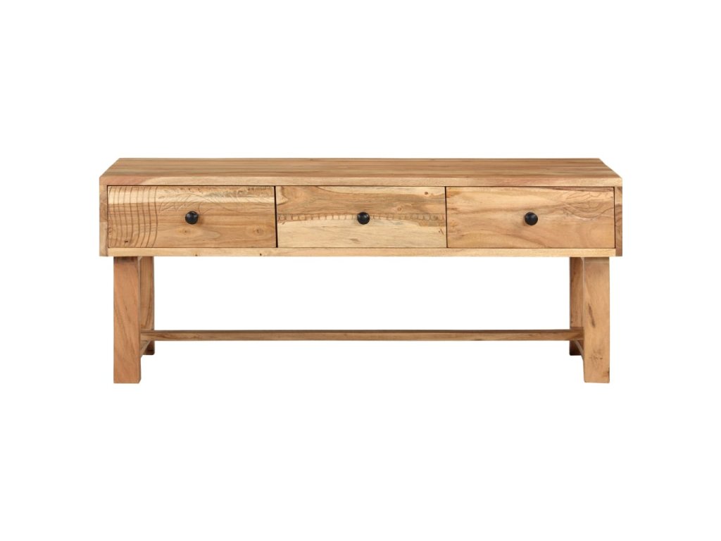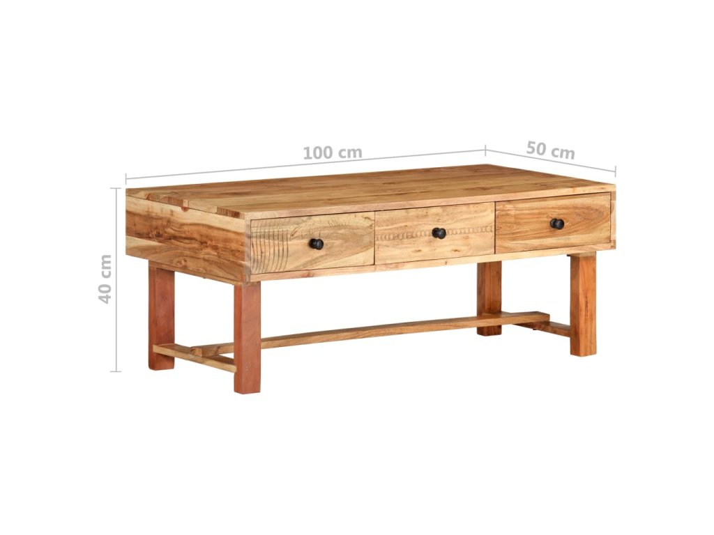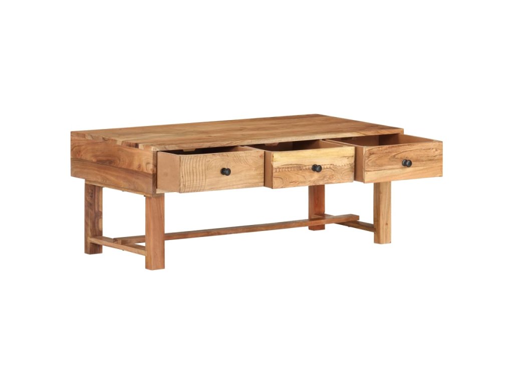 Tento stolek do obývacího pokoje je vyrobený z masivní akácie, tropického tvrdého dřeva, které je odolné vůči povětrnostním vlivům a má dlouhou životnost. Konferenční stolek můžete uplatnit také jako odkládací stolek nebo stolek k pohovce. Ve stolku jsou zásuvky, které jsou ideální pro ukládání různých věcí, jako jsou CD, DVD, časopisy, sluchátka, příslušenství k telefonu a podobně.