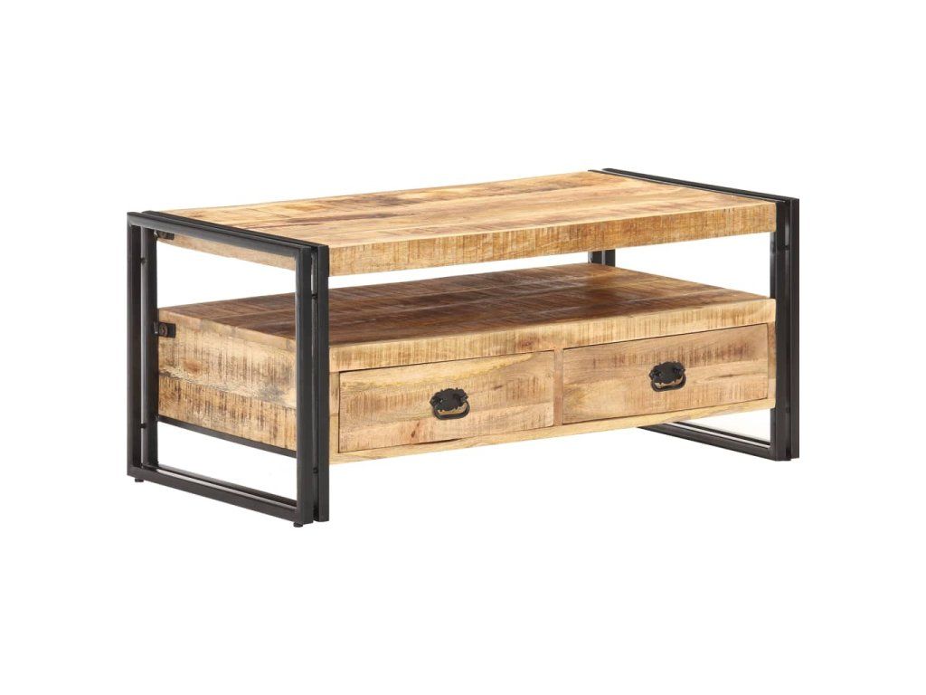 Tento konferenční stolek je vyrobený z masivního hrubého mangovníku, tropického tvrdého dřeva se schopností nést velkou váhu. Toto dřevo také výborně odolává zubu času a opotřebení, a proto je nábytek z něj vyrobený stabilní a odolný. Ocelové nohy stolku jsou ošetřené práškovým nástřikem a poskytují extra stabilitu. Tento stolek k pohovce má také 2 zásuvky a poličku, které poskytují dostatek prostoru pro organizované uložení vašich věcí v dosahu ruky. Tento akcentový stolek může sloužit také jako stolek k pohovce nebo stolek do obývacího pokoje.