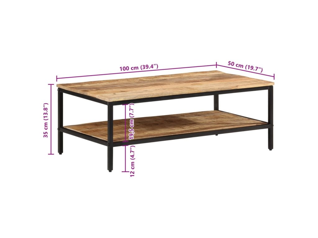 - Materiál: masivní hrubé mangovníkové dřevo s přírodním povrchem, železo