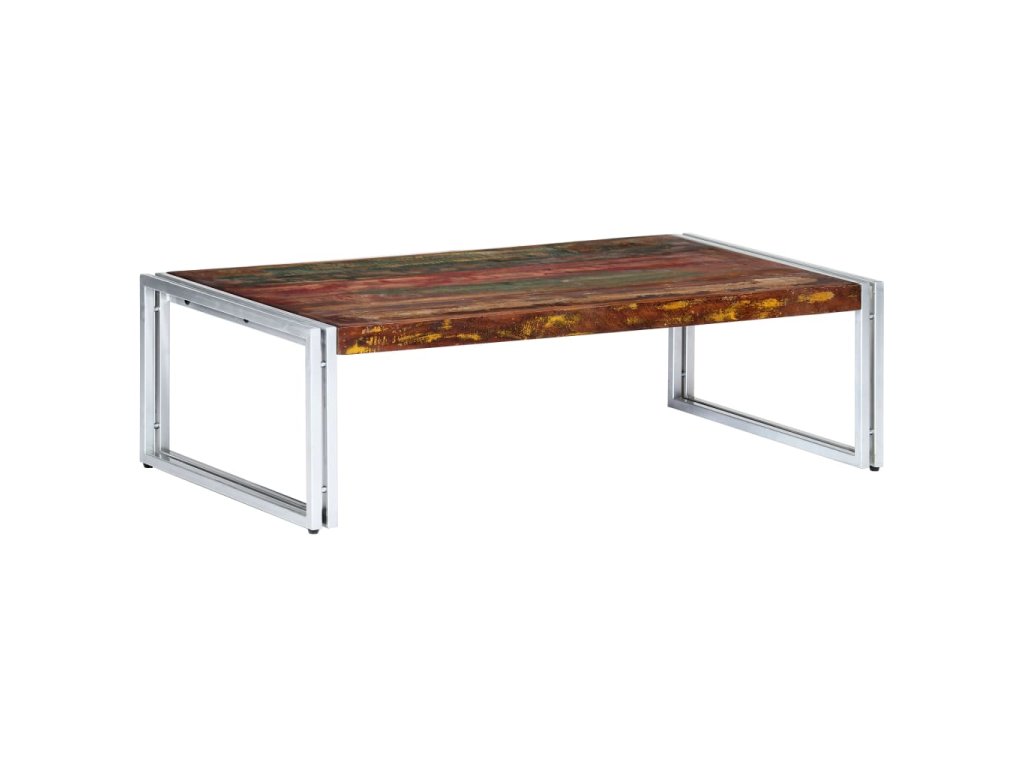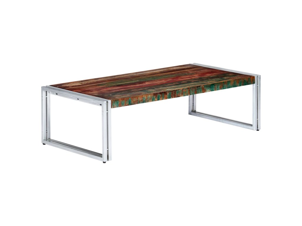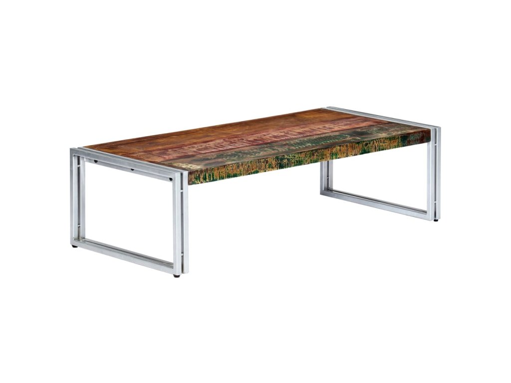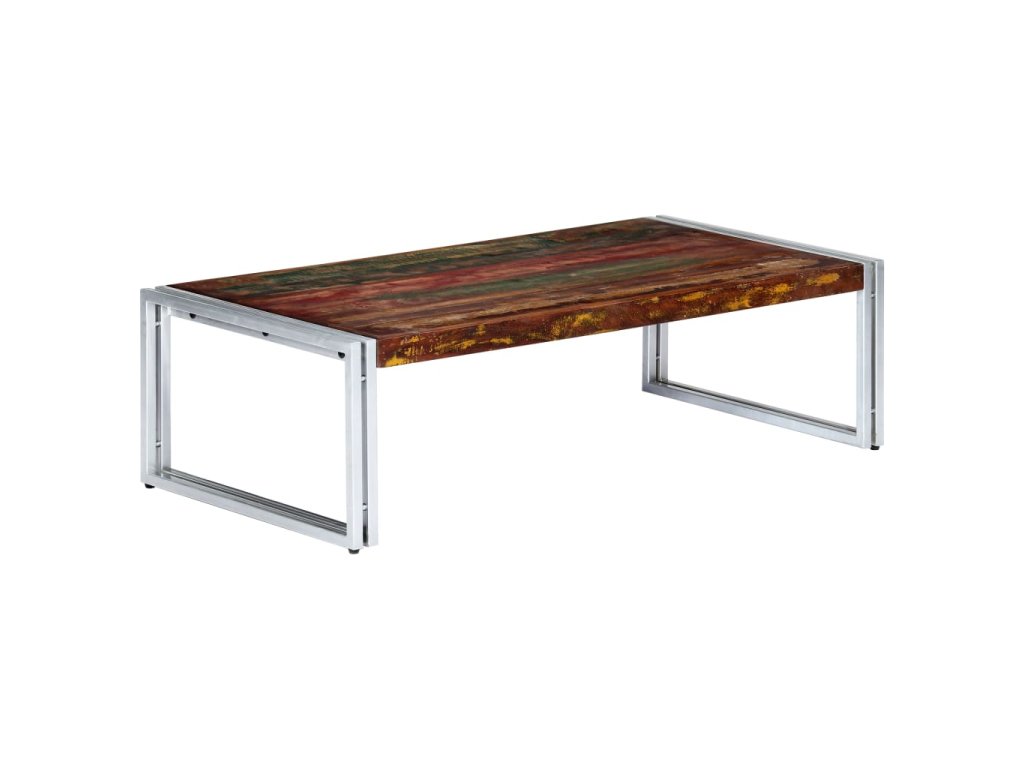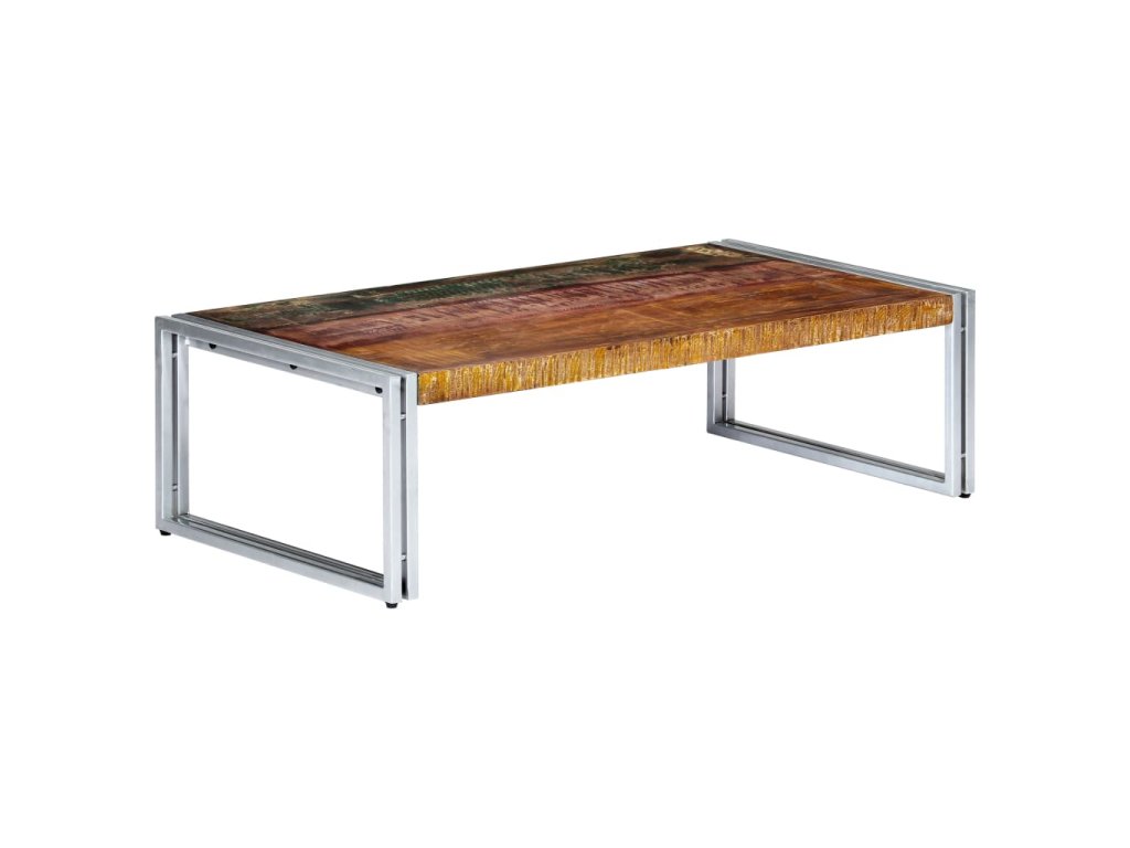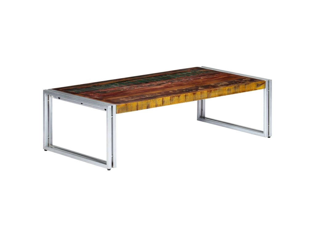 Tento dřevěný konferenční stolek z masivního recyklovaného dřeva je jak sofistikovaný, tak stylový a se svým rámem z práškovaného železa vnese do vašeho bydlení vintage šarm a industriální styl.
