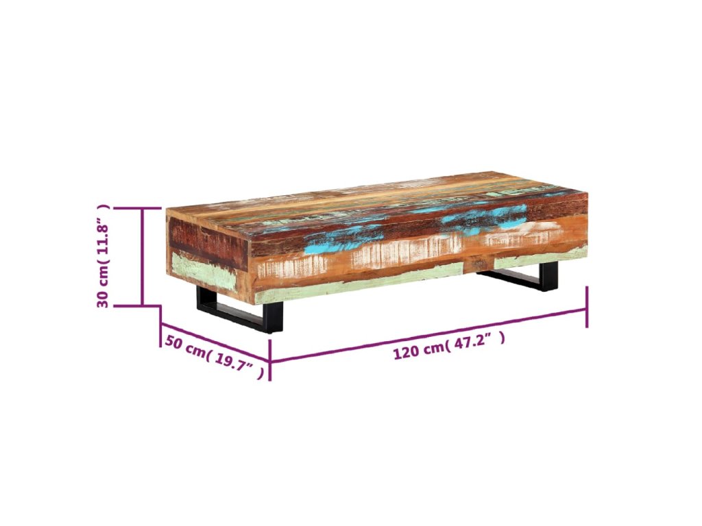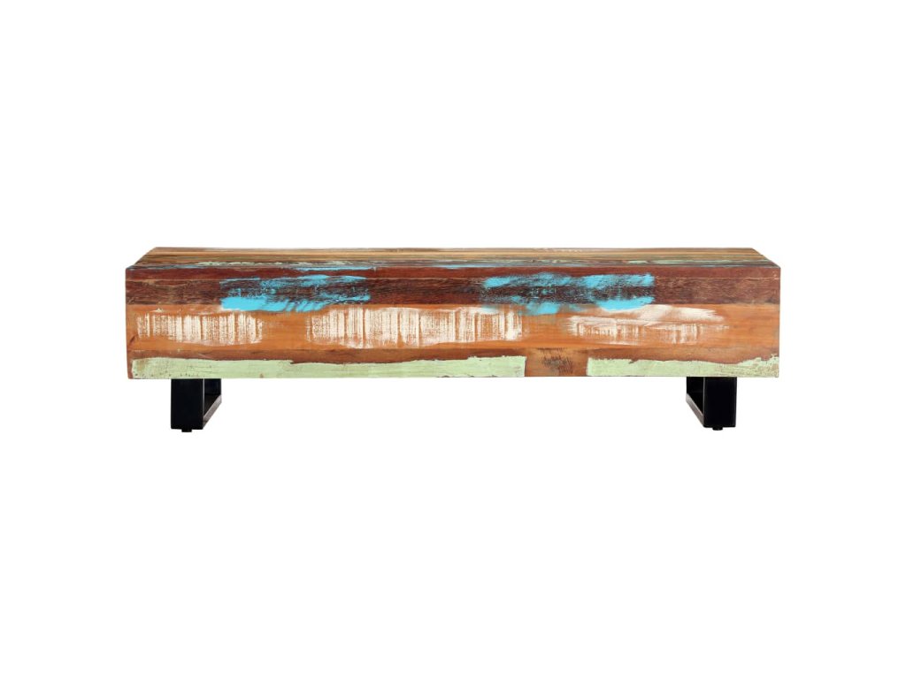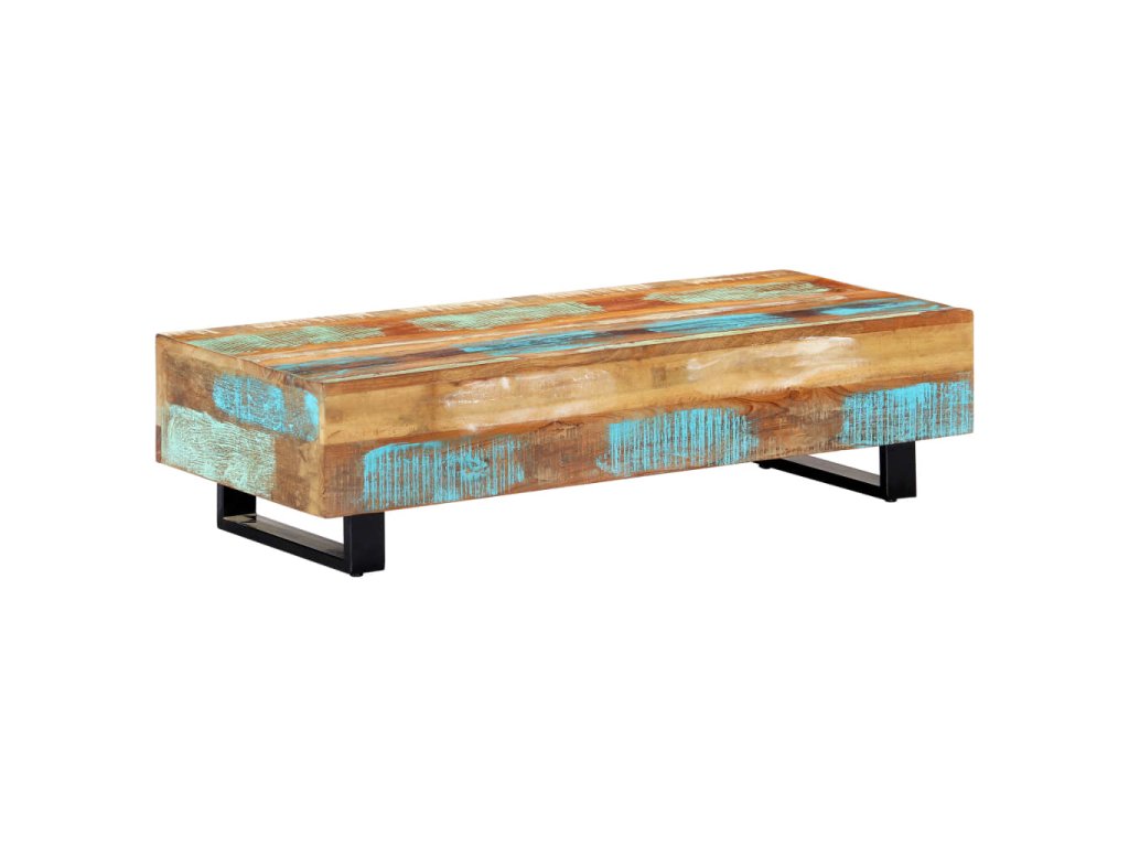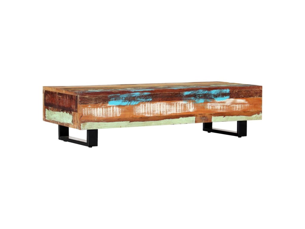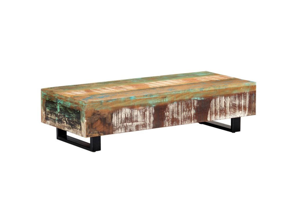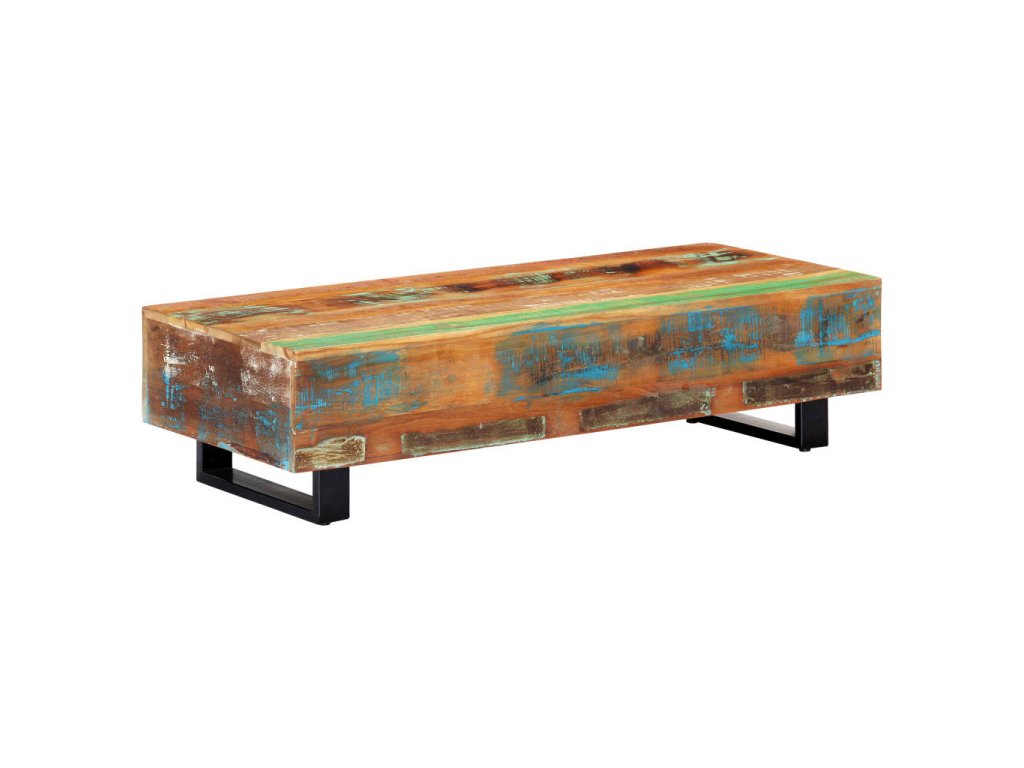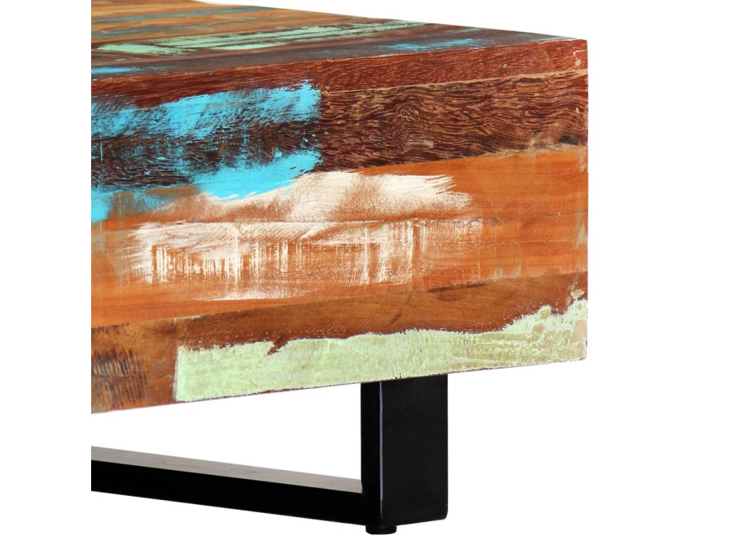 Pestrobarevný konferenční stolek je vyrobený z masivního recyklovaného dřeva, které pochází z trámů, podlah a podpěrných nosníků ze starých budov určených k demolici. Obsahuje tedy celou řadu různých druhů dřeva, jako jsou borovice, teak, buk, dub, cedr, mangovník, akácie atd. Recyklované dřevo tak nabývá vlastností všech těchto rozličných typů dřevin. Navíc je již zestárlé, zvětralé a vyschlé, takže se nesmršťuje ani neohýbá. Každá fáze výrobního procesu je prováděná s mimořádnou péčí, ať už se jedná o natírání, leštění nebo lakování. Prvotřídní řemeslné zpracování a elegantní kresba dřeva činí každý kus nábytku jedinečným a lehce odlišným od ostatních. Sestavení vintage konferenčního stolku je jednoduché.