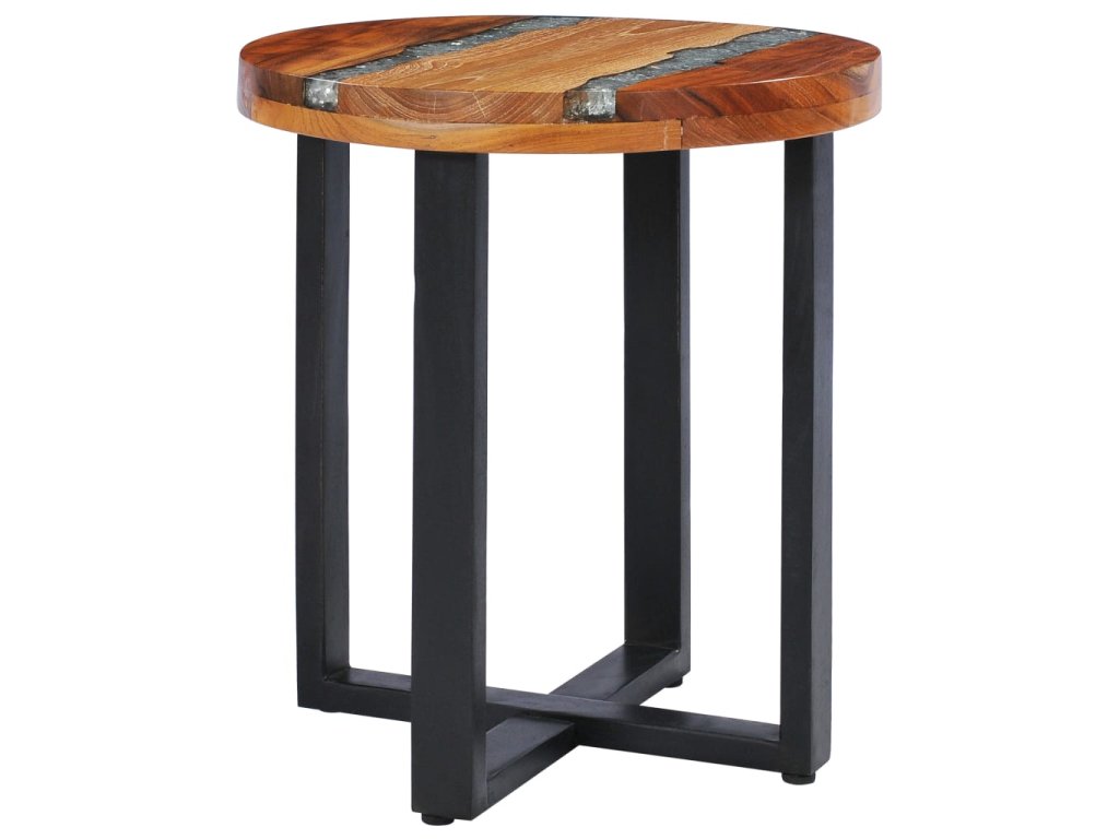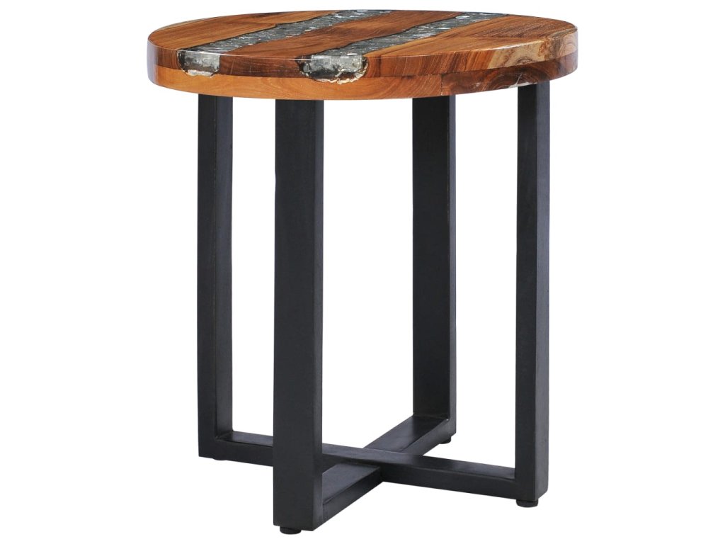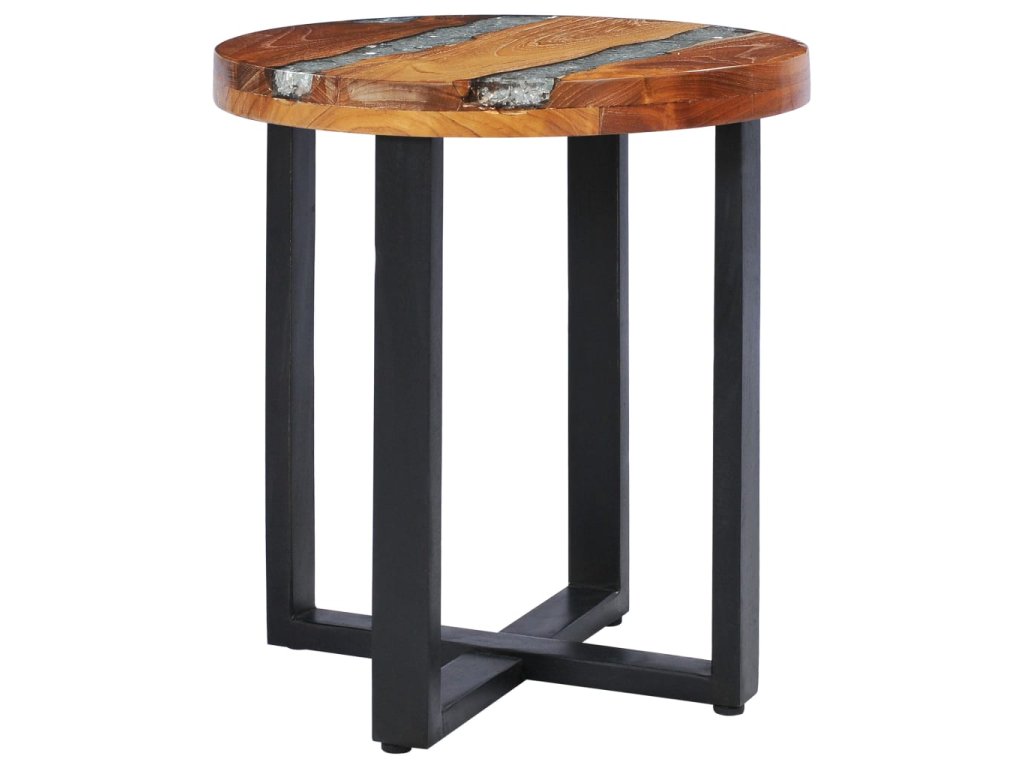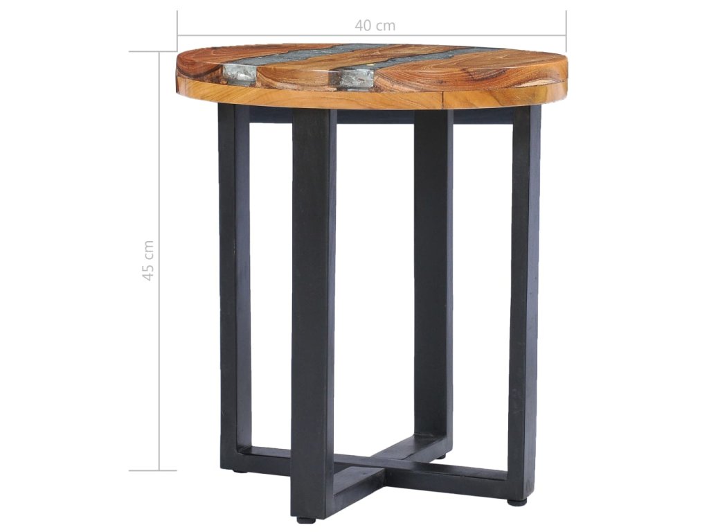 Tento jedinečný konferenční stolek, vyrobený z masivního teakového a mangovníkového dřeva a zdobený průhledným polyresinem, vyzařuje rustikální kouzlo, kterým zaujme na první pohled. Jeho kulatá deska vám poskytne stabilní a pevnou plochu, kam si můžete pokládat své nápoje, vázy, mísy s ovocem a různé dekorace. Konferenční stolek lze taktéž použít jako odkládací stolek.