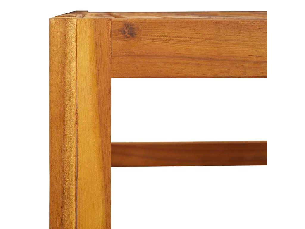 - Masivní akáciové dřevo: Tento terasový stůl je vyrobený z masivního akáciového dřeva. Masivní akáciové dřevo je nádherný přírodní materiál. Akáciové dřevo je tropické tvrdé dřevo, které má hustou strukturu a je pevné a odolné.
