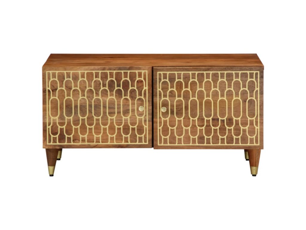 - Materiál: masivní mangovníkové dřevo s medově hnědou povrchovou úpravou, kompozitní dřevo, železo