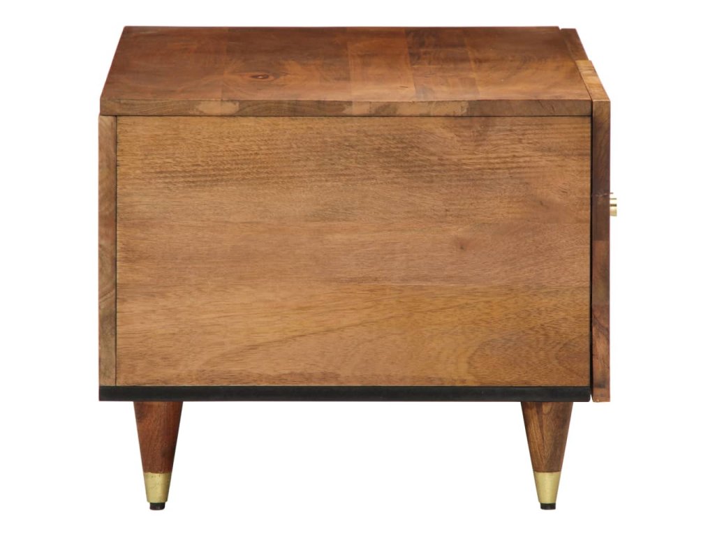 - Masivní mangovníkové dřevo: Masivní mangovníkové dřevo je pevné tropické tvrdé dřevo, ze kterého se vyrábí robustní nábytek. Krásná kresba dřeva propůjčuje každému kusu nábytku jeho jedinečný a od všech ostatních lehce odlišný vzhled. Odkládací stolek je vyrobený z masivního mangovníkového dřeva, je tedy stabilní a odolný.
