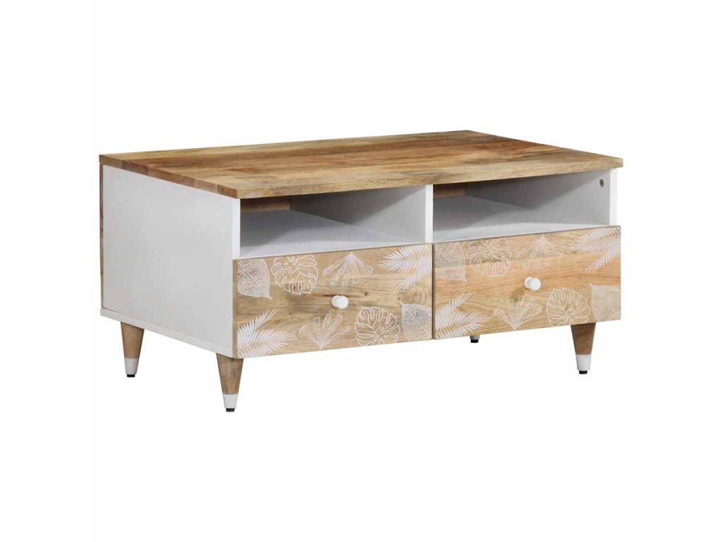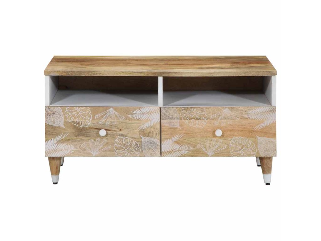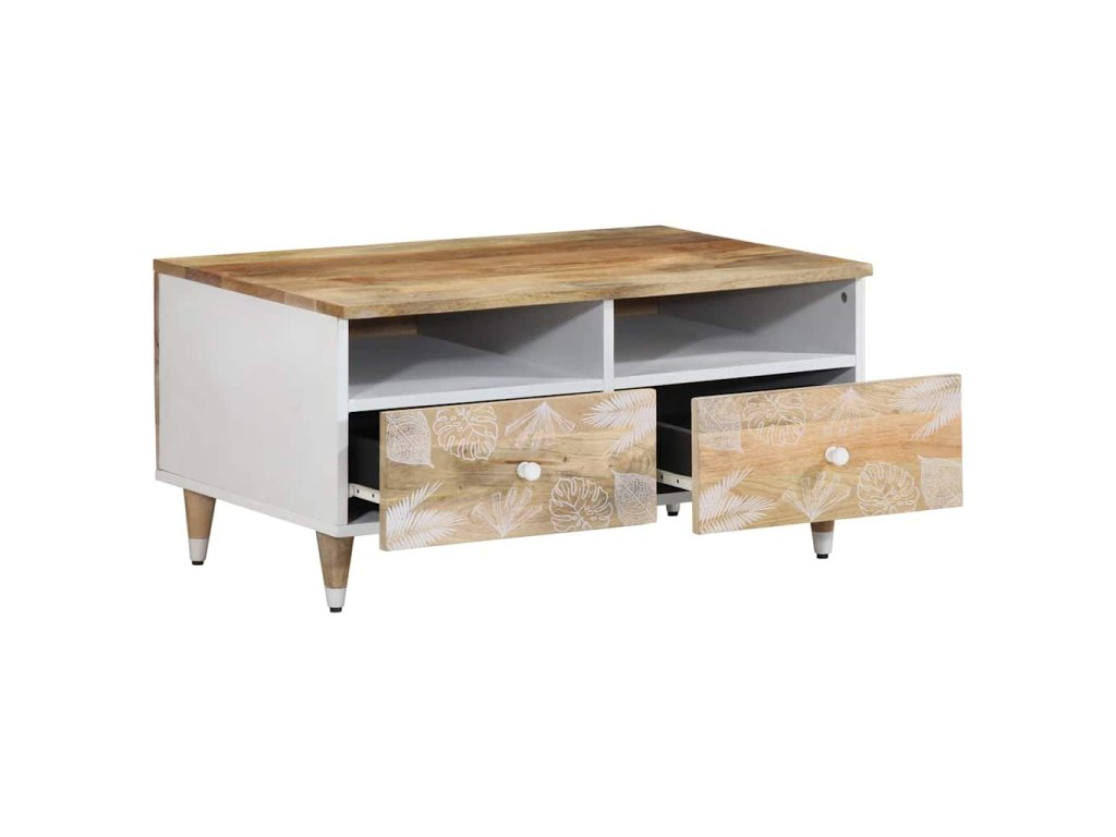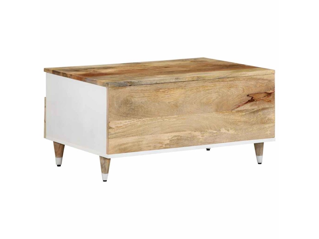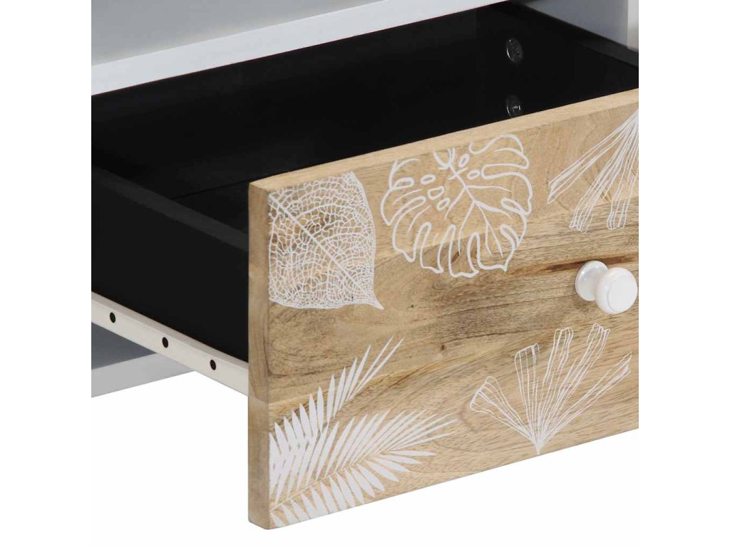 - Materiál: Přírodní mango s bílým lakem, kompozitní dřevo, kov