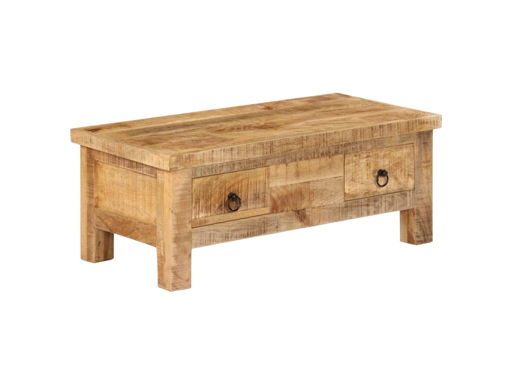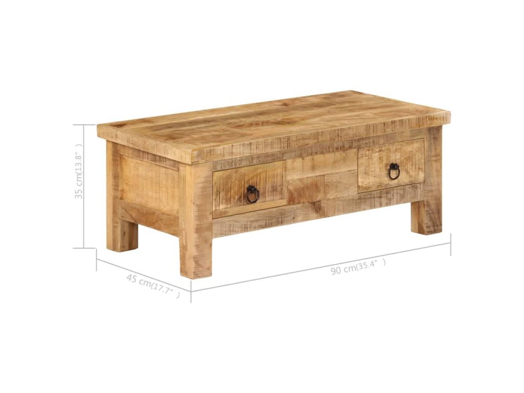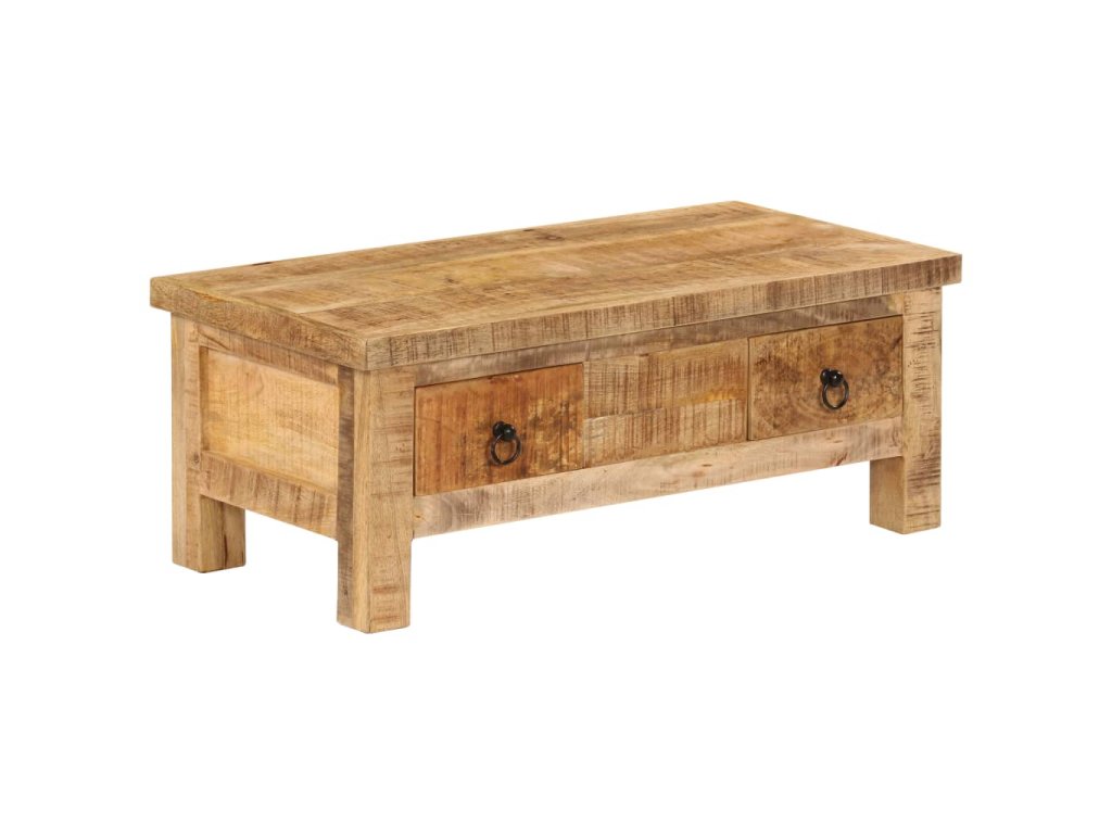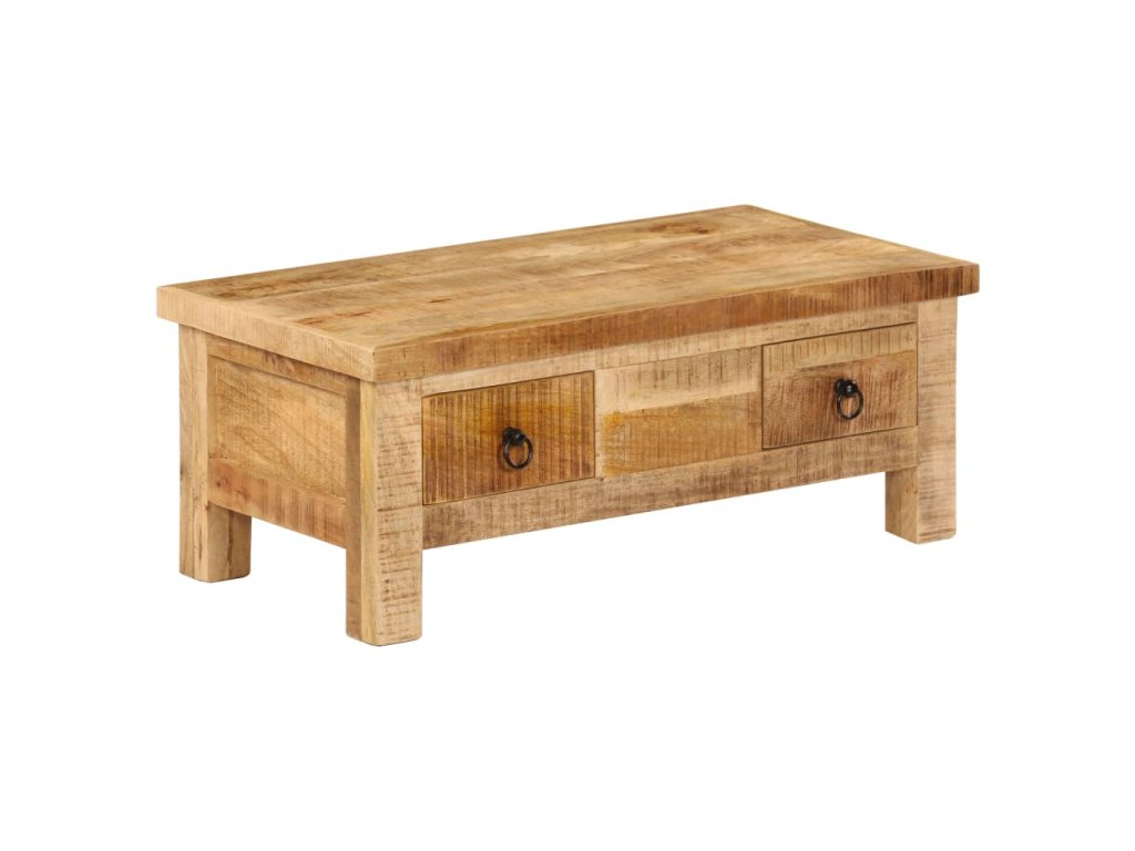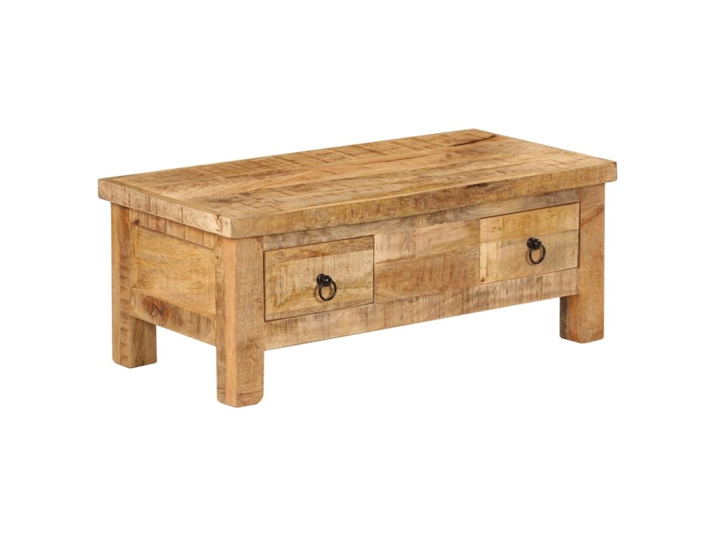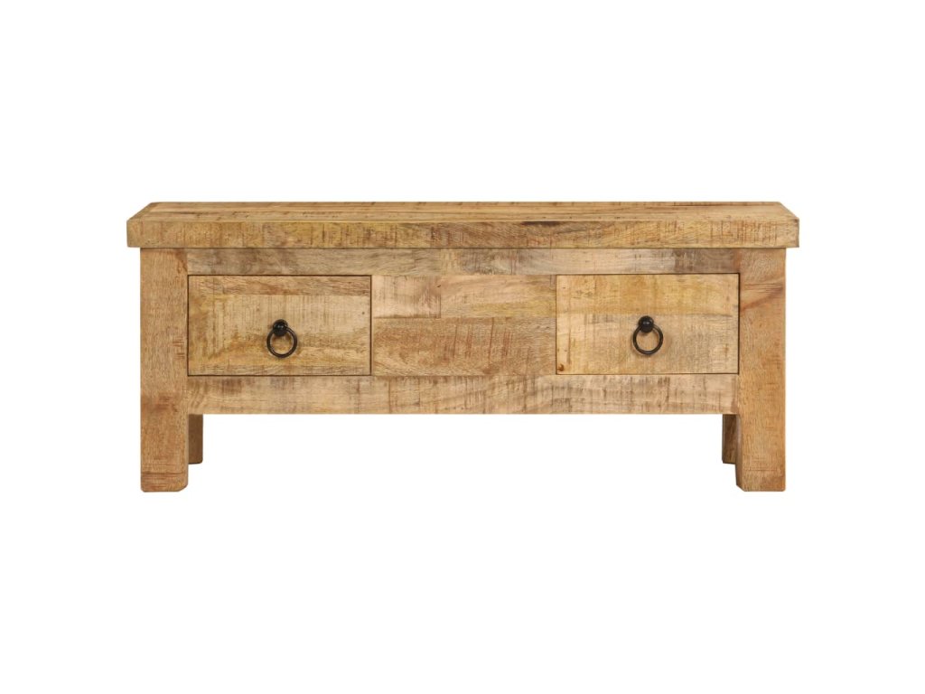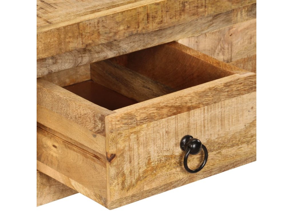 Odkládací stolek s působivým designem je vyrobený z masivního mangovníkového dřeva, je tudíž vysoce stabilní a odolný. Je celý ručně vyrobený, přičemž každé fázi výrobního procesu byla věnována mimořádná péče, ať už šlo o leštění, natírání anebo lakování. Stolek do obýváku disponuje 2 praktickými zásuvkami, které vám poskytnou spoustu místa, kam si můžete uložit svá multimediální zařízení, knížky a další věci.