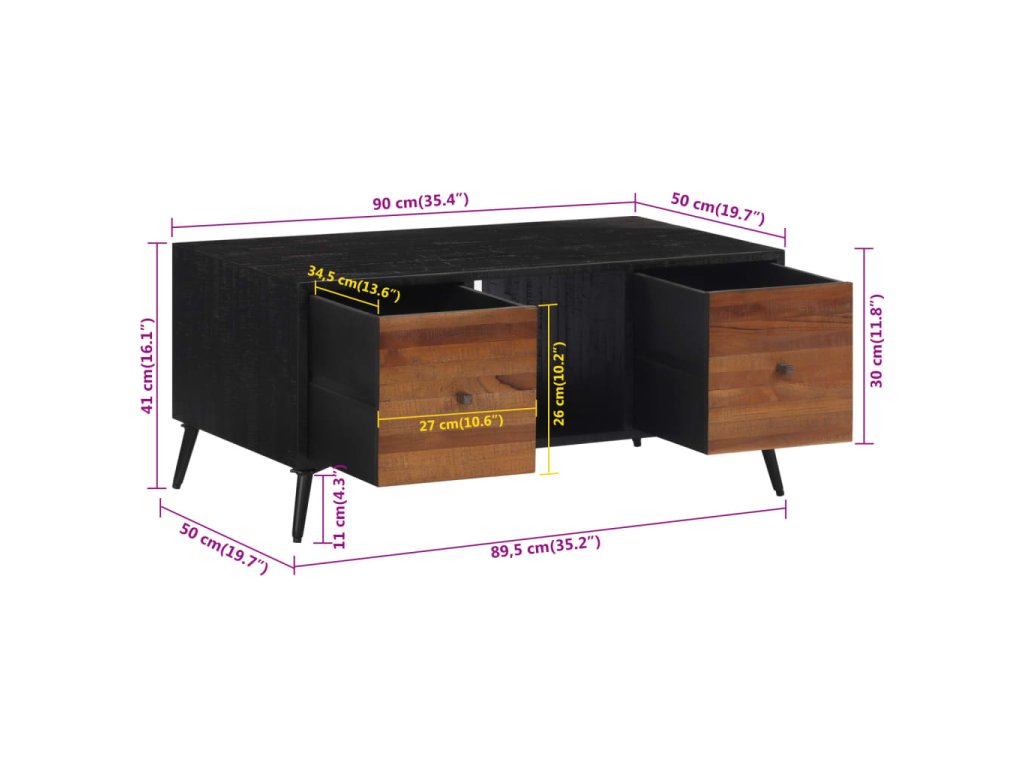 - Robustní horní deska: Dřevěná deska stolku k pohovce se skvěle hodí pro servírování nápojů a občerstvení nebo pro vystavení různých dekorativních předmětů.