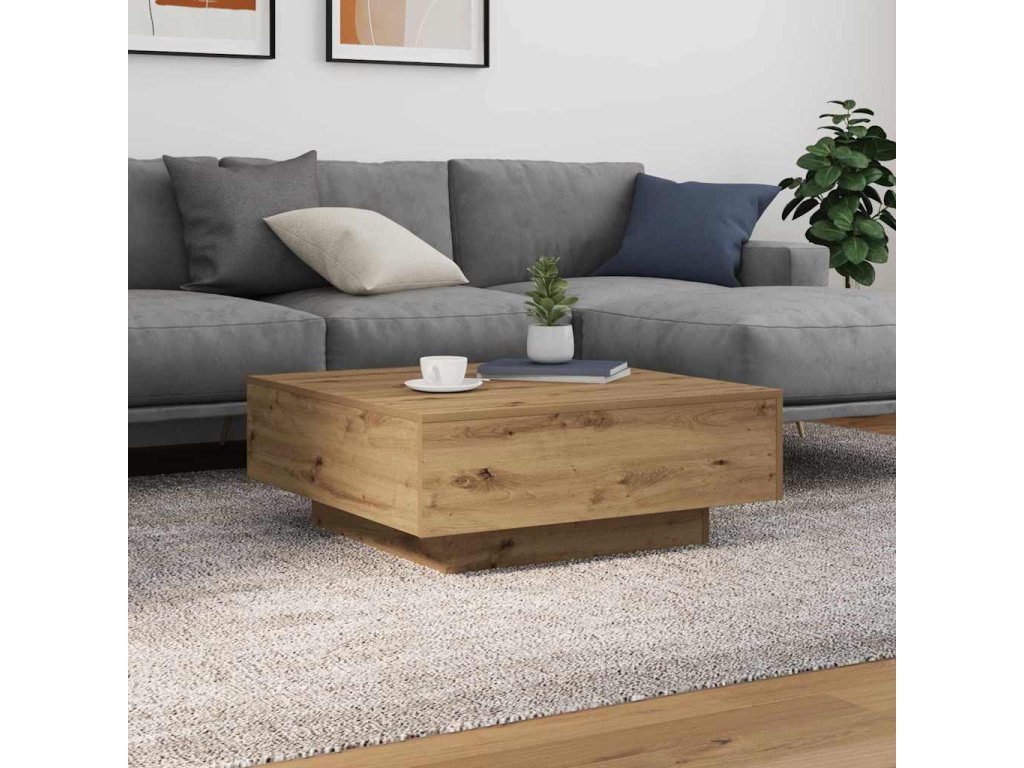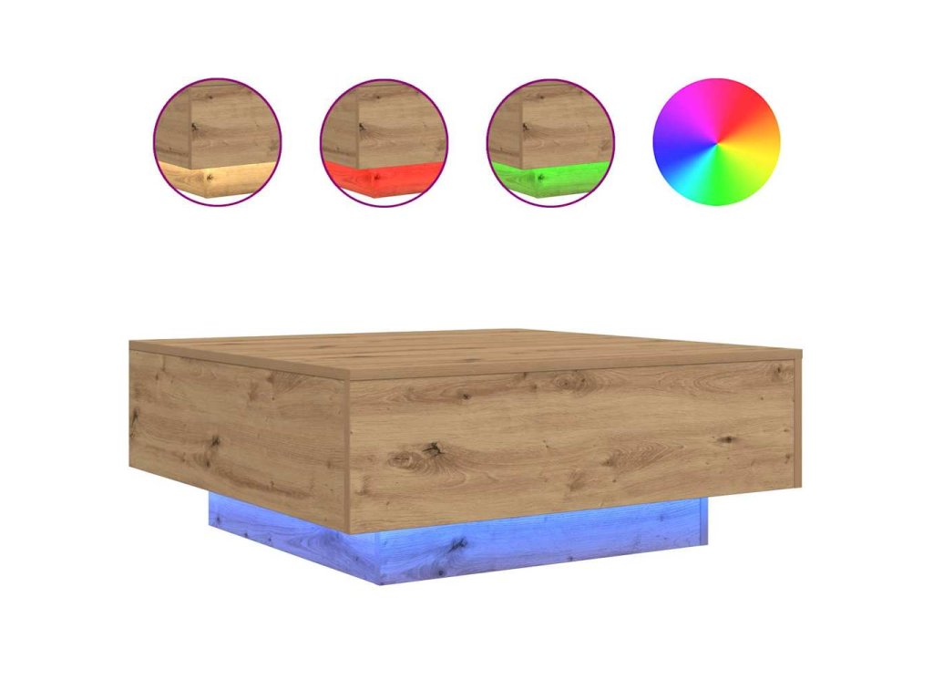 Tento moderní konferenční stolek s LED osvětlením skvěle kombinuje styl a praktickou eleganci a vhodně zapadá do vašeho obýváku. Jeho elegantní povrch z kompozitního dřeva doplní jakékoli dekorace a zlepší atmosféru díky integrovanému LED osvětlení.