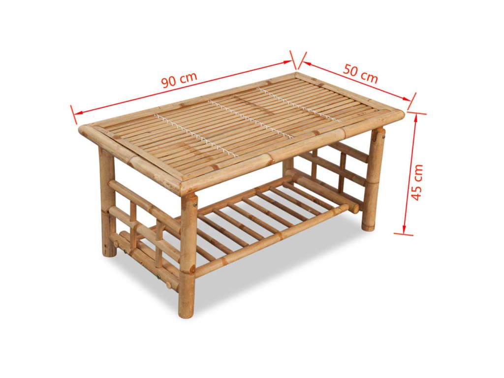 Tento konferenční stolek z bambusu s jednoduchým, a přitom výrazným designem bude jedinečným doplňkem do obývacího pokoje nebo venkovního obytného prostoru. Přírodní odstín bambusu dodá vašemu interiéru tropický nádech.