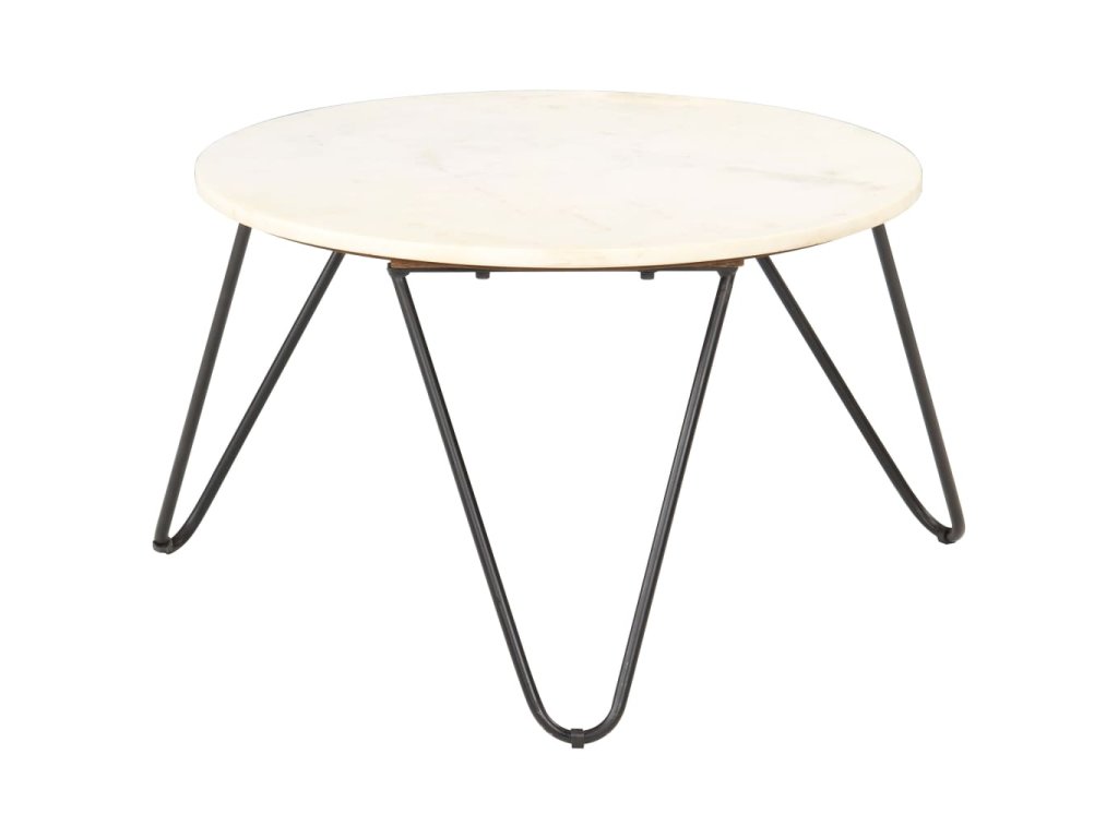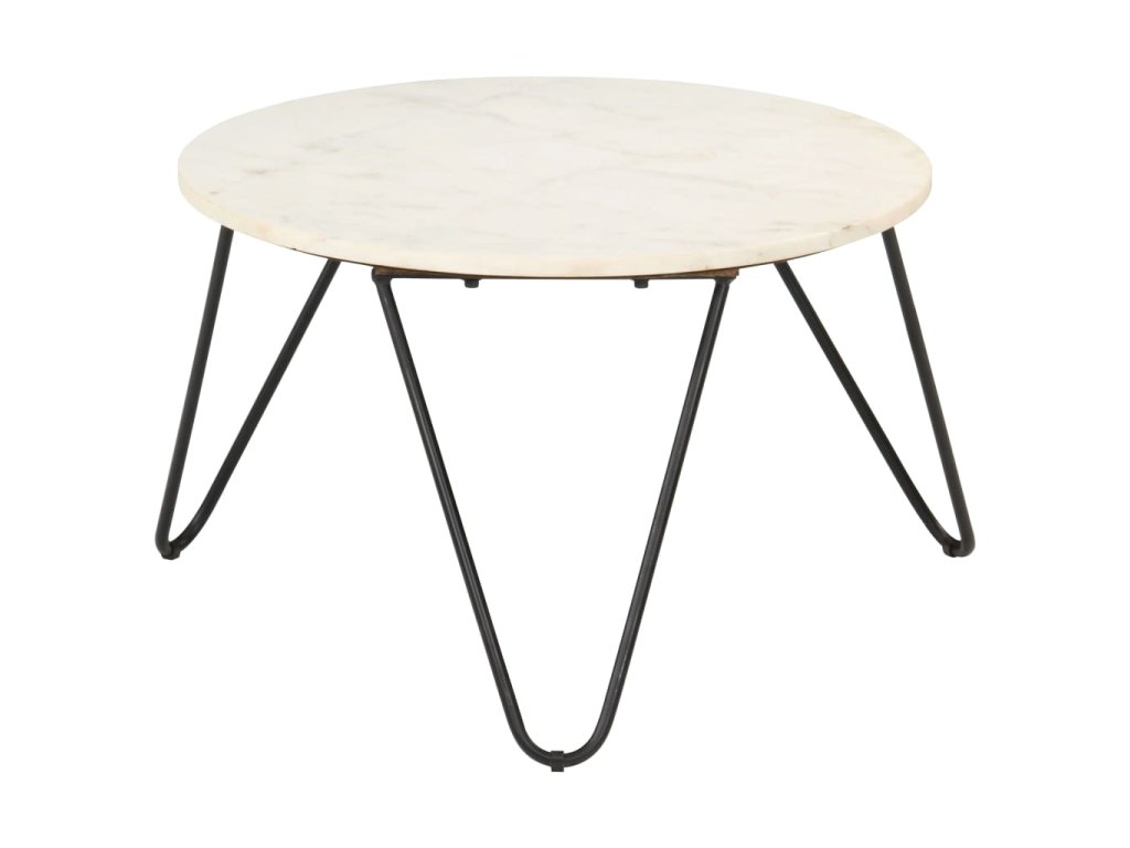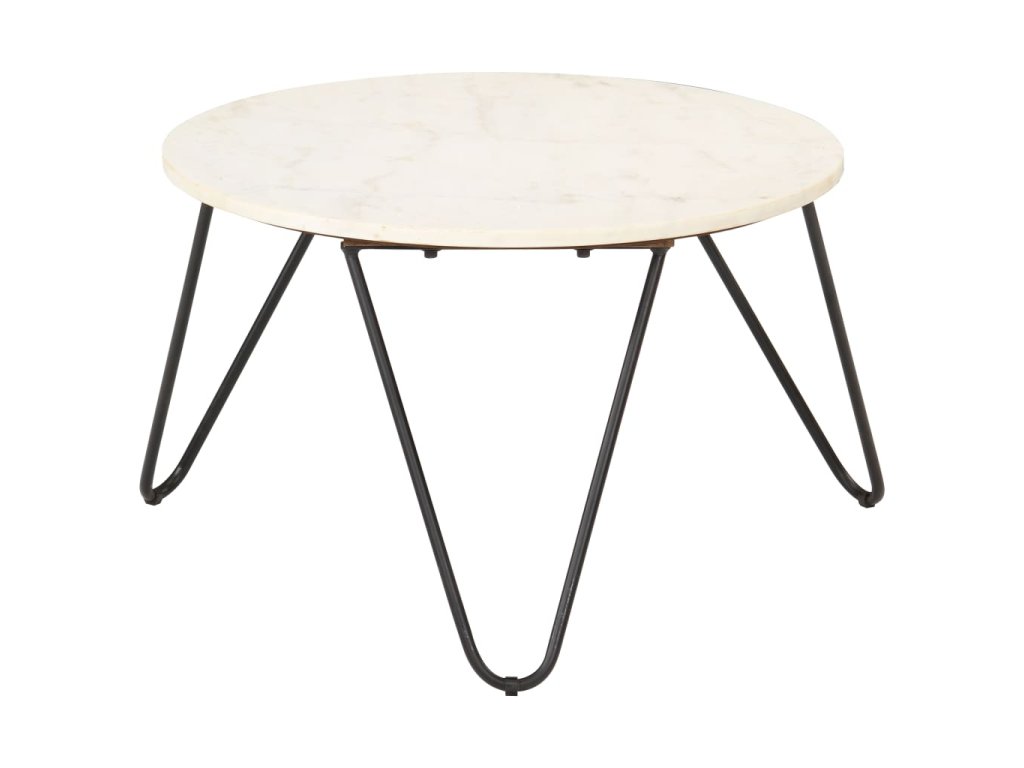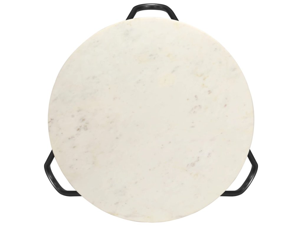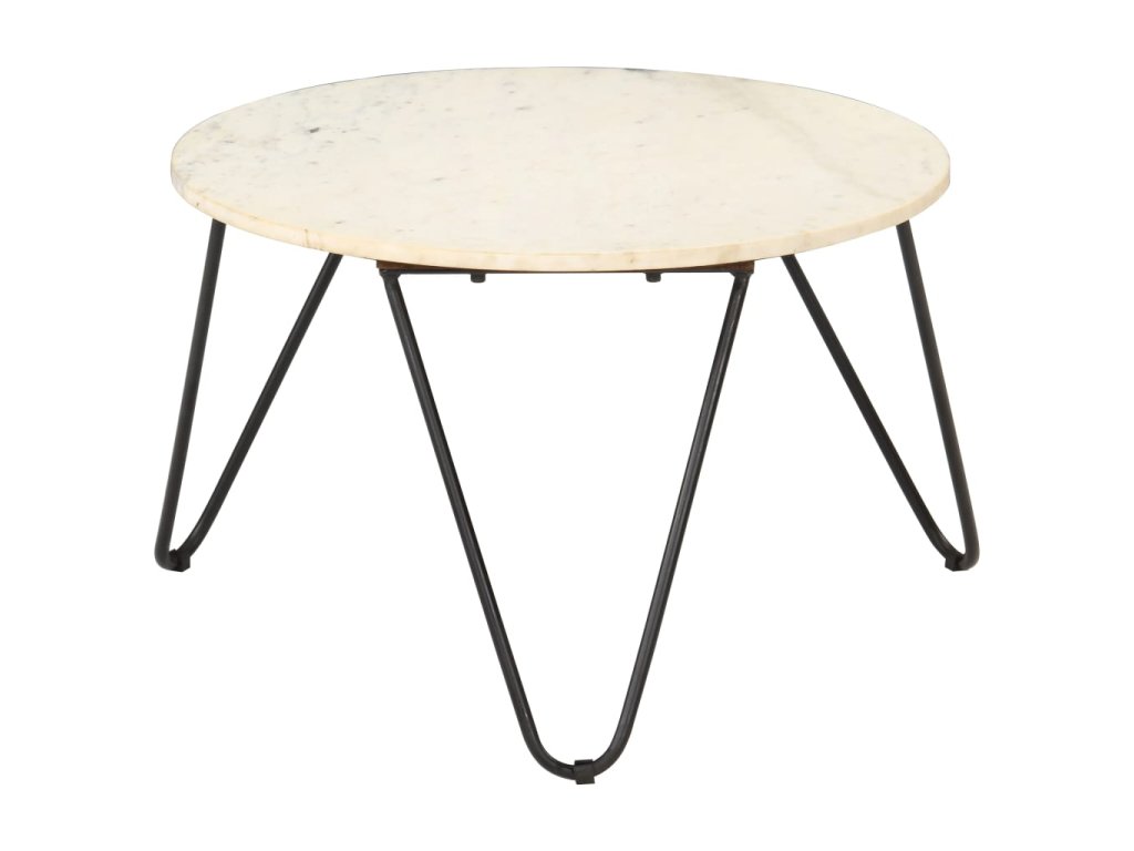 Stolek je vyrobený z pravého kamene s mramorovým vzorem a odolného práškově lakovaného železného rámu. Je stabilní a má dlouhou životnost. Na stabilní stolní desku si můžete s důvěrou umístit vaše nápoje, vázy, mísy s ovocem a jiné dekorace. Tento koncový stolek se snadno čistí vlhkým hadříkem.