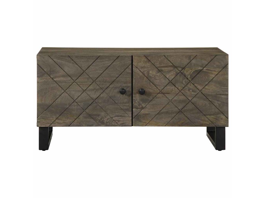 - Materiál: masivní mangové dřevo s šedou povrchovou úpravou pískováním, umělé dřevo, kov