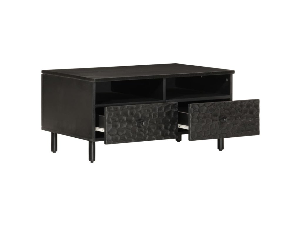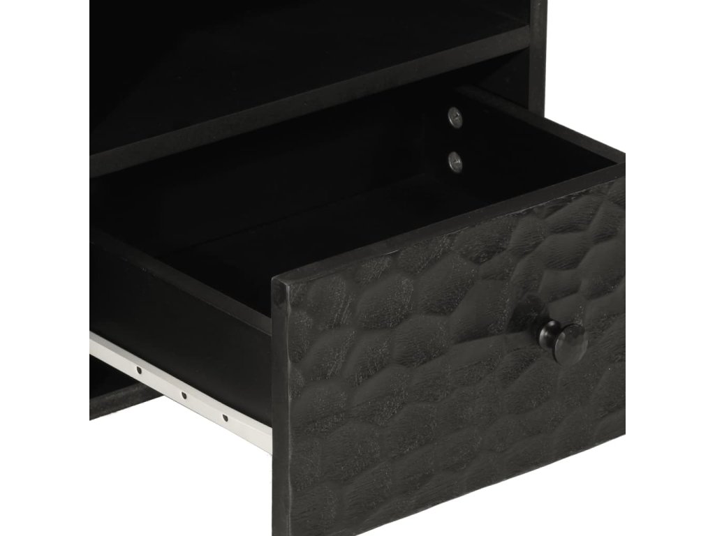 - Materiál: masivní mangovníkové dřevo černě mořené, kompozitní dřevo, železo