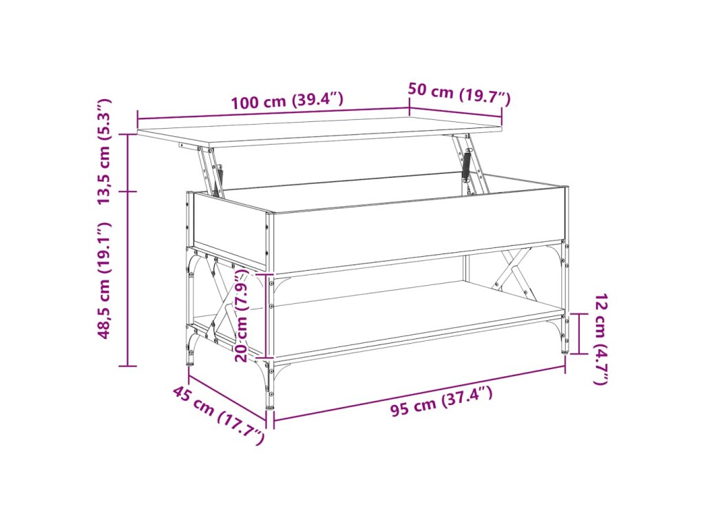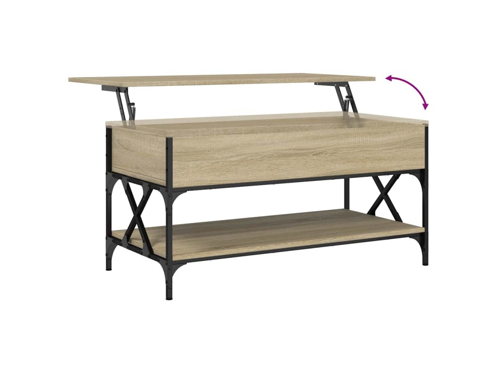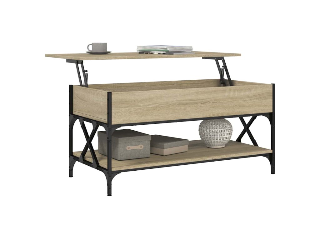 - Design se zvedací deskou: Stolní deska tohoto stolku k pohovce se dá hladce zvednout do pohodlné výšky, a tím jej přeměnit na místo, kde můžete pracovat nebo stolovat.