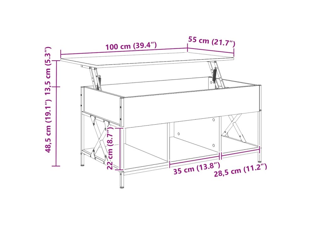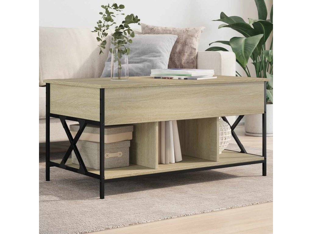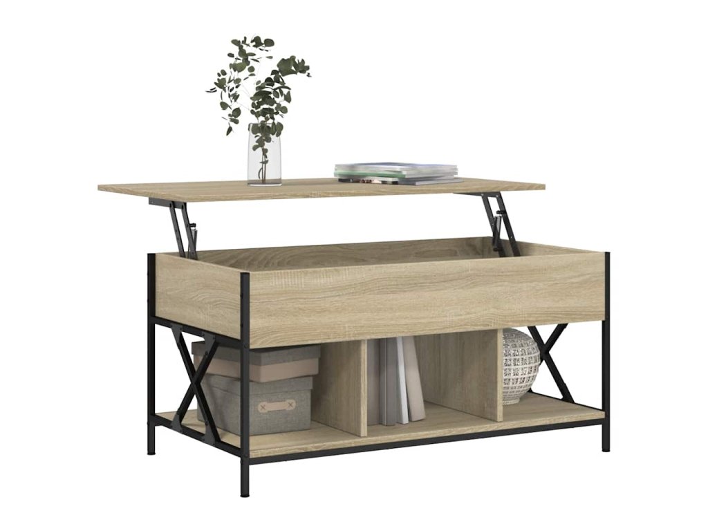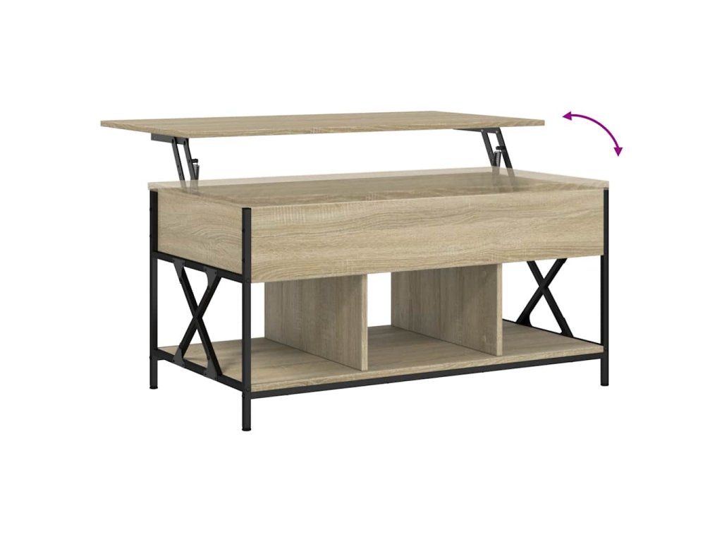 - Design se zvedací deskou: Stolní deska tohoto stolku k pohovce se dá hladce zvednout do pohodlné výšky, a tím jej přeměnit na místo, kde můžete pracovat nebo stolovat.
