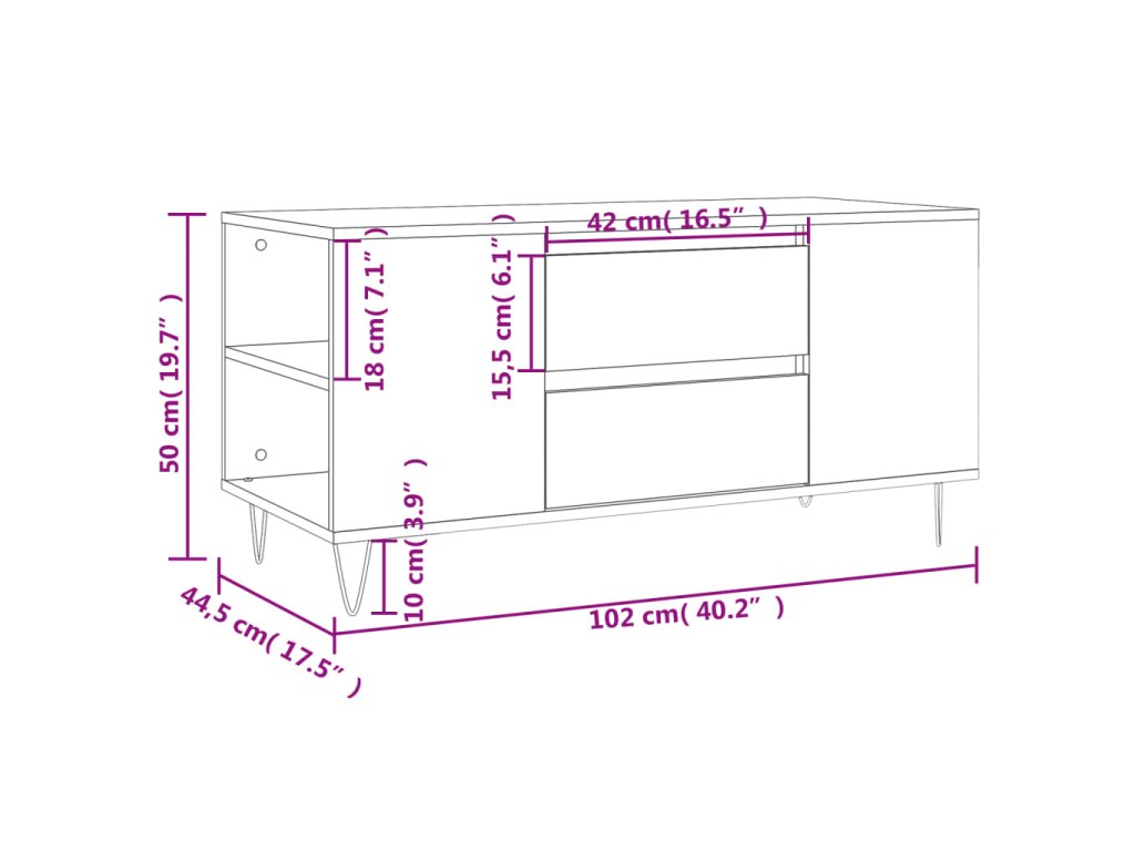 - Rozměry: 102 x 44,5 x 50 cm (D x Š x V)