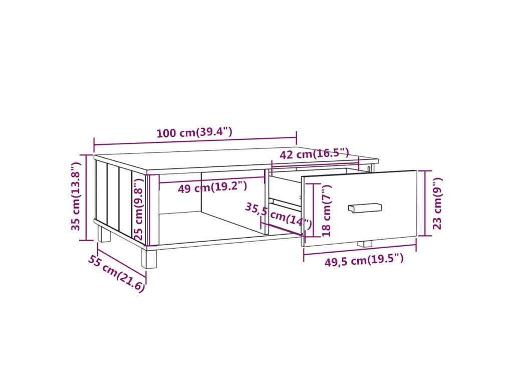 Tento středový stolek je vyroben z masivního borového dřeva, takže je stabilní a robustní. Stolní deska je ideální k umístění jídla a nápojů, dekorativních předmětů atd. Kromě toho má odkládací stolek zásuvku a přihrádku, které poskytují dostatek úložného prostoru pro časopisy, knihy a další nezbytnosti, které chcete mít po ruce.