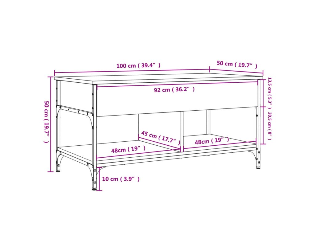 - Dostatek úložného prostoru: Stolek do obývacího pokoje má pod horní deskou spoustu úložného prostoru, jež vám poslouží jako skrytá přihrádka, kde si můžete uložit často používané věci a nebude se vám na ně prášit.