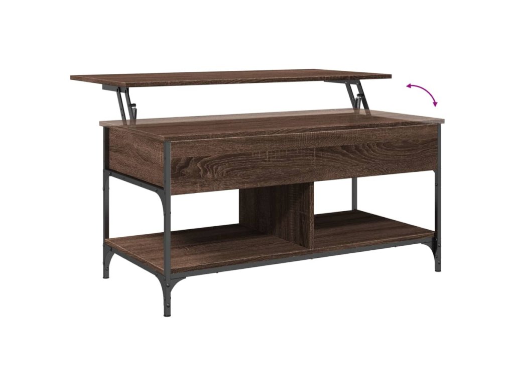- Design se zvedací deskou: Stolní deska tohoto stolku k pohovce se dá hladce zvednout do pohodlné výšky, a tím jej přeměnit na místo, kde můžete pracovat nebo stolovat.