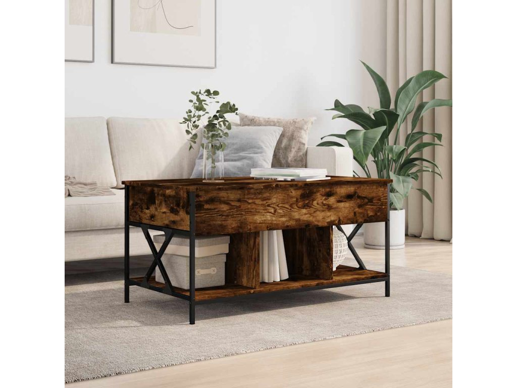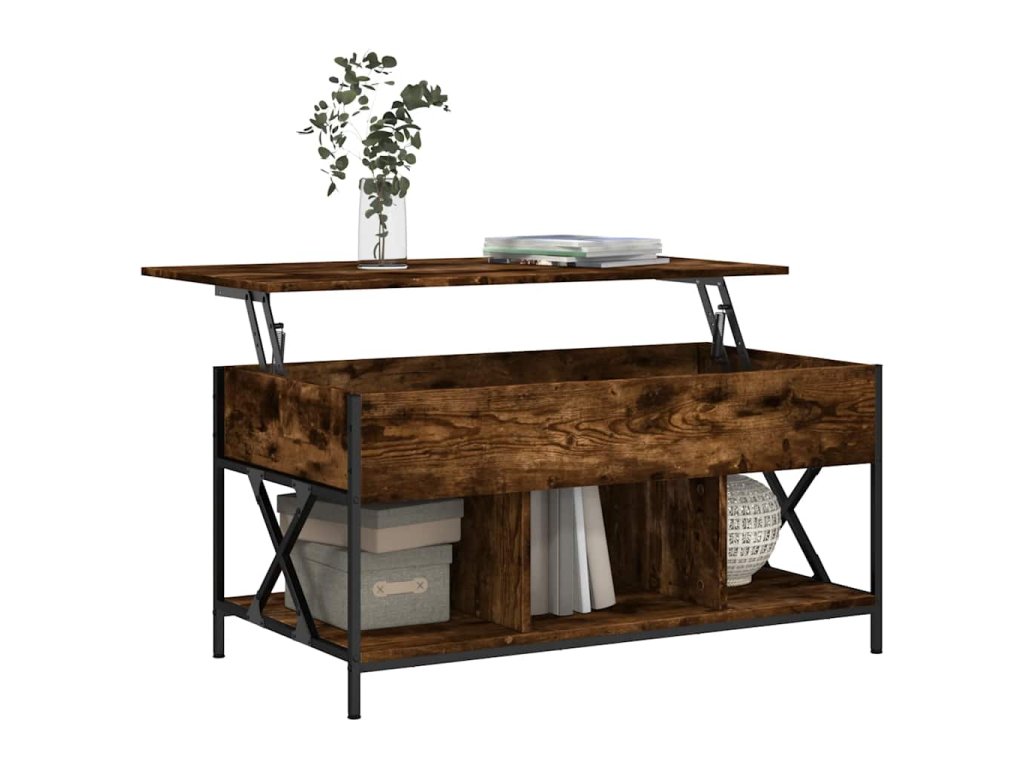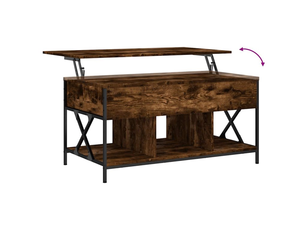 - Design se zvedací deskou: Stolní deska tohoto stolku k pohovce se dá hladce zvednout do pohodlné výšky, a tím jej přeměnit na místo, kde můžete pracovat nebo stolovat.