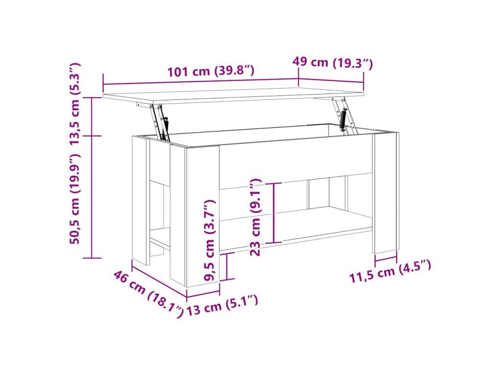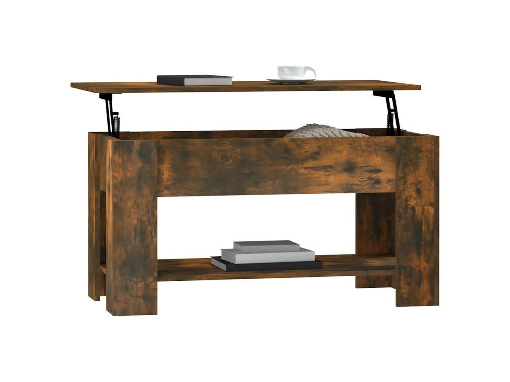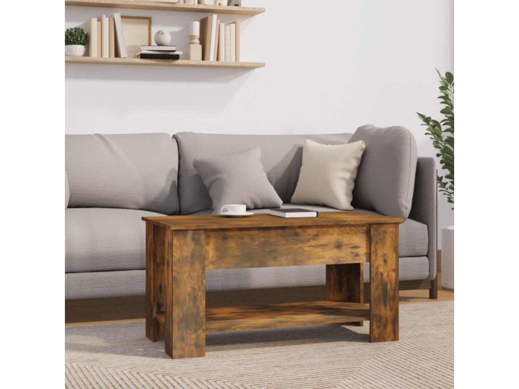 - Design se zvedací deskou: Stolní deska tohoto stolku k pohovce se dá hladce zvednout do pohodlné výšky, a tím jej přeměnit na místo, kde můžete pracovat nebo stolovat.