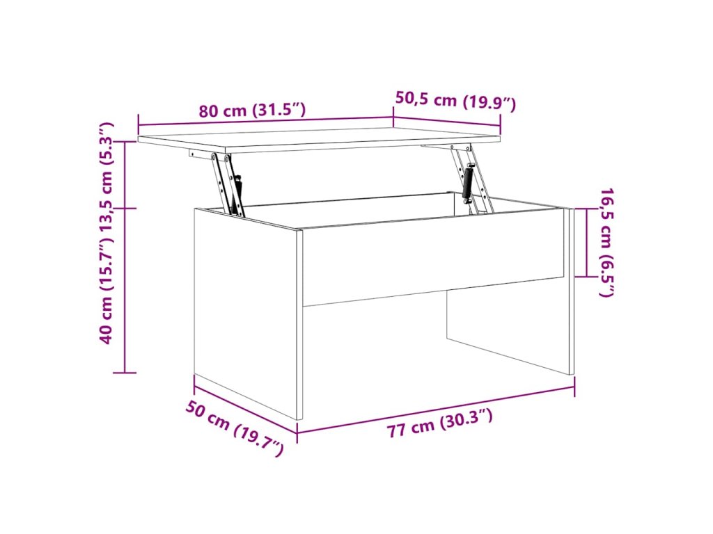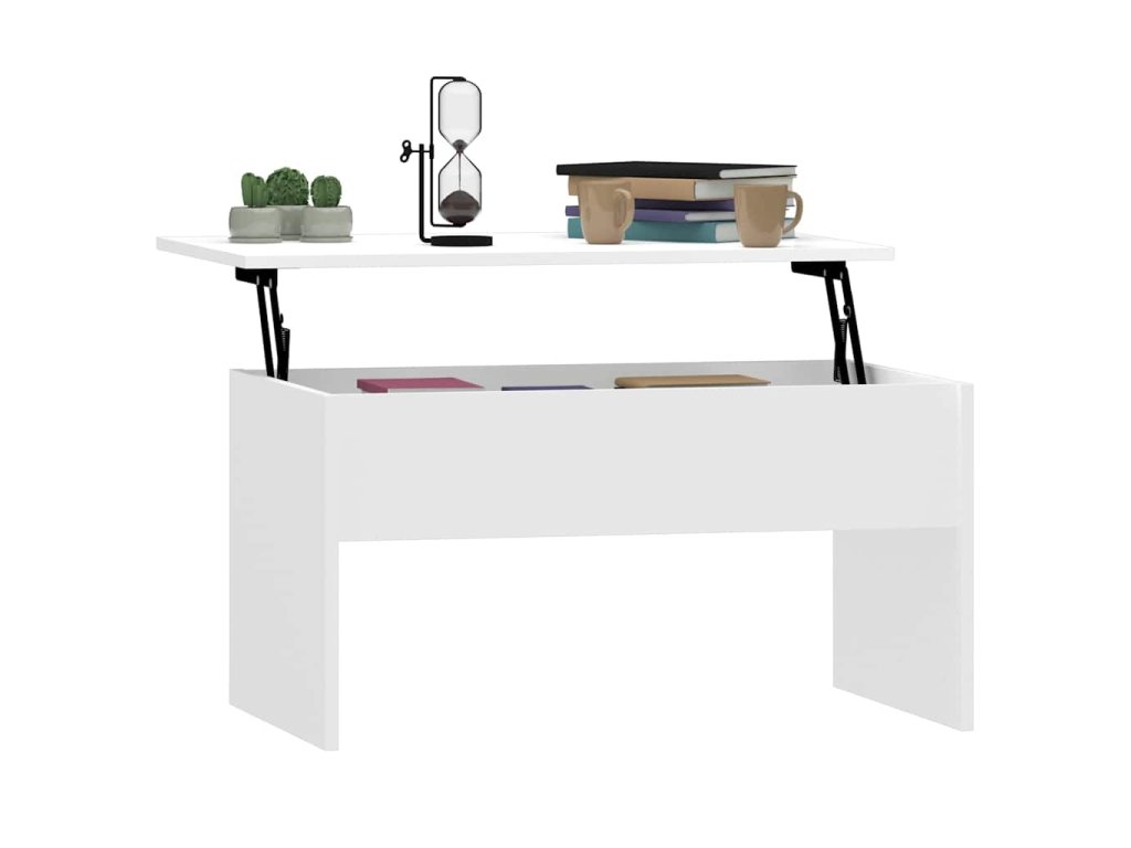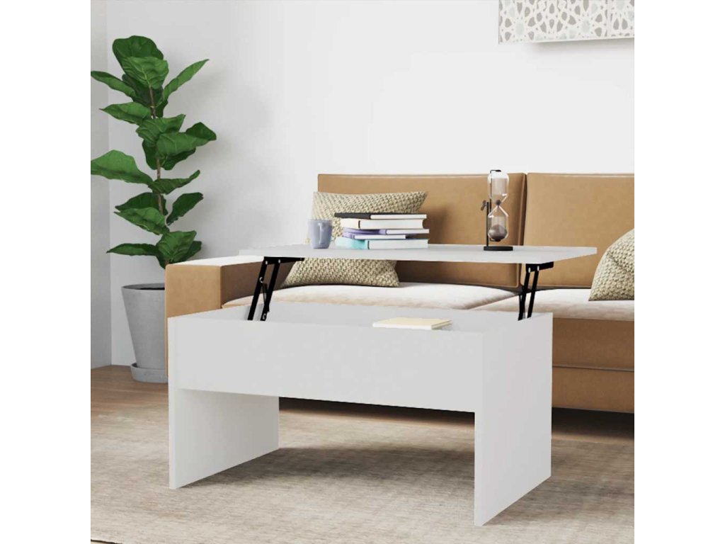- Design se zvedací deskou: Stolní deska tohoto stolku k pohovce se dá hladce zvednout do pohodlné výšky, a tím jej přeměnit na místo, kde můžete pracovat nebo stolovat.