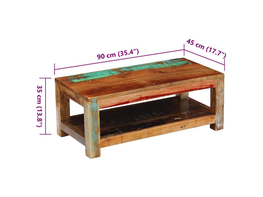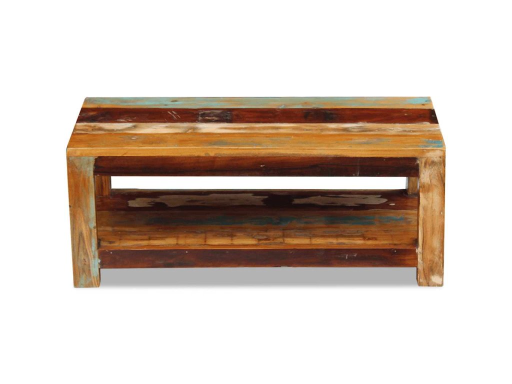 Tento z recyklovaného dřeva vyrobený konferenční stolek v retro stylu. Bude to originální kus do vašeho obýváku! Konstrukce z masivního dřeva je stabilní, takže si na ni můžete bezpečně odložit nápoje, mísy s ovocem nebo dekorativní předměty. Můžete jej také používat jako stolek ke gauči, odkládací stolek, koncový stolek konzolový stolek apod.