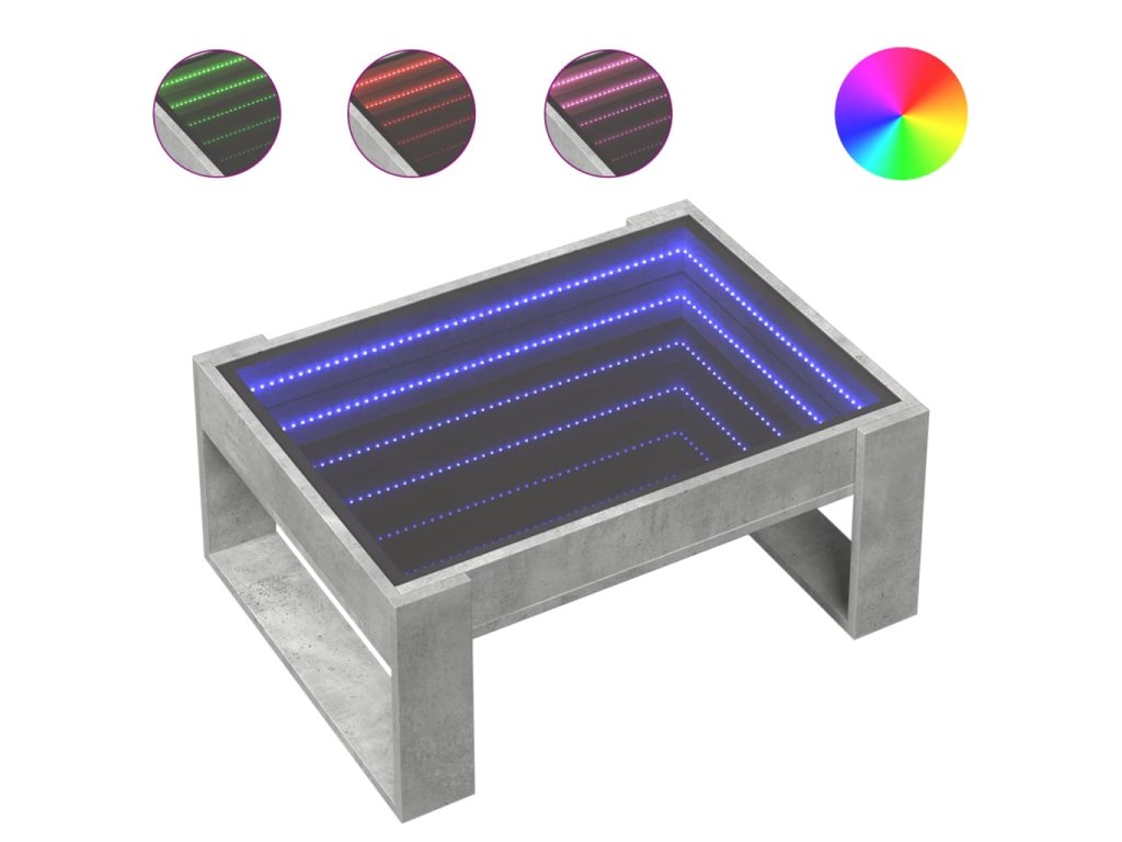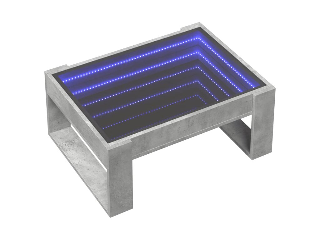 Jedinečný konferenční stolek s infinity LED zrcadlem je vhodný na různá místa.