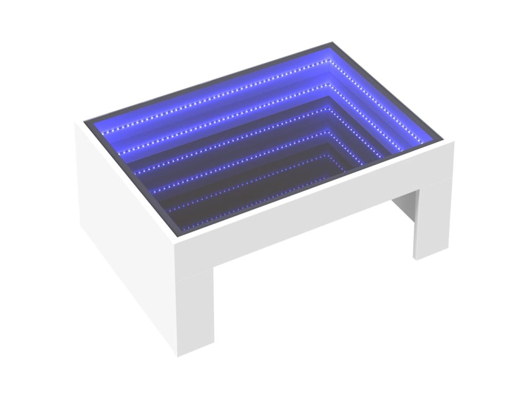Jedinečný konferenční stolek s infinity LED zrcadlem je vhodný na různá místa.