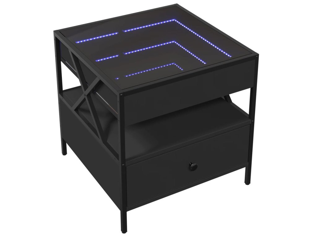 Jedinečný konferenční stolek s infinity LED zrcadlem je vhodný na různá místa.