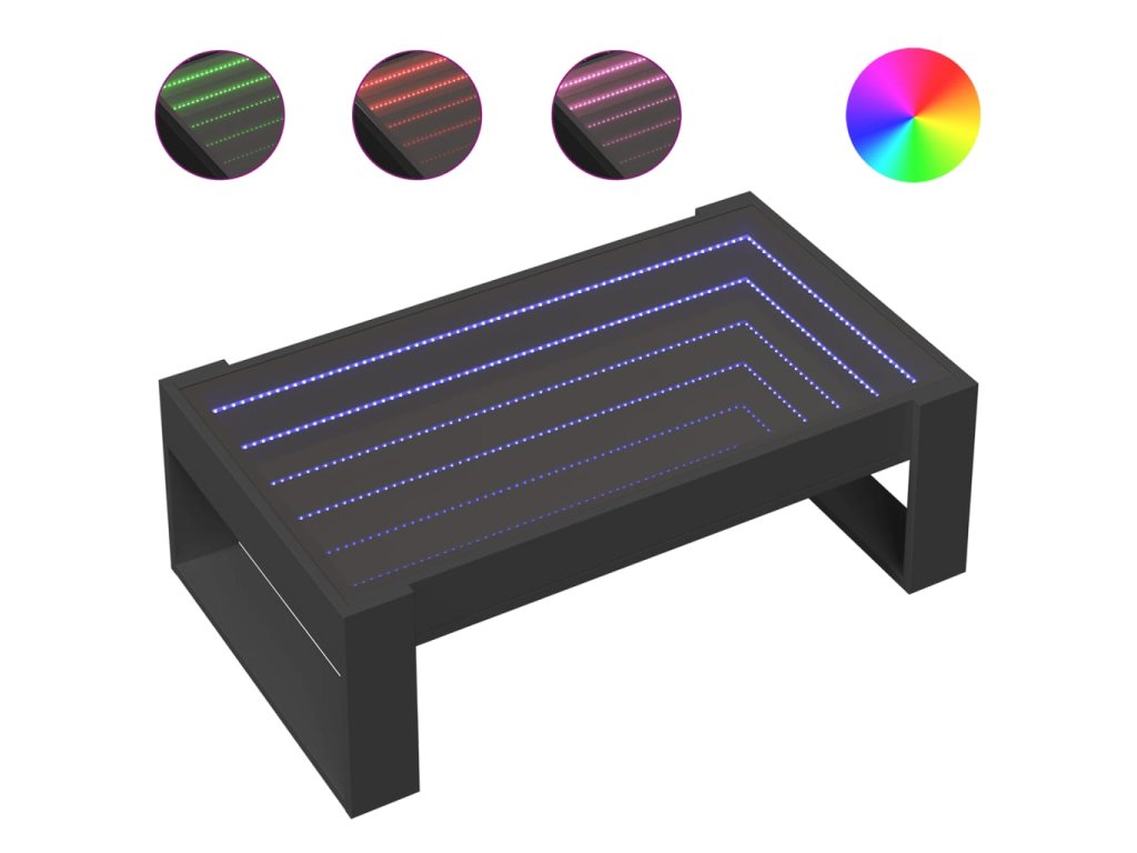 Jedinečný konferenční stolek s infinity LED zrcadlem je vhodný na různá místa.