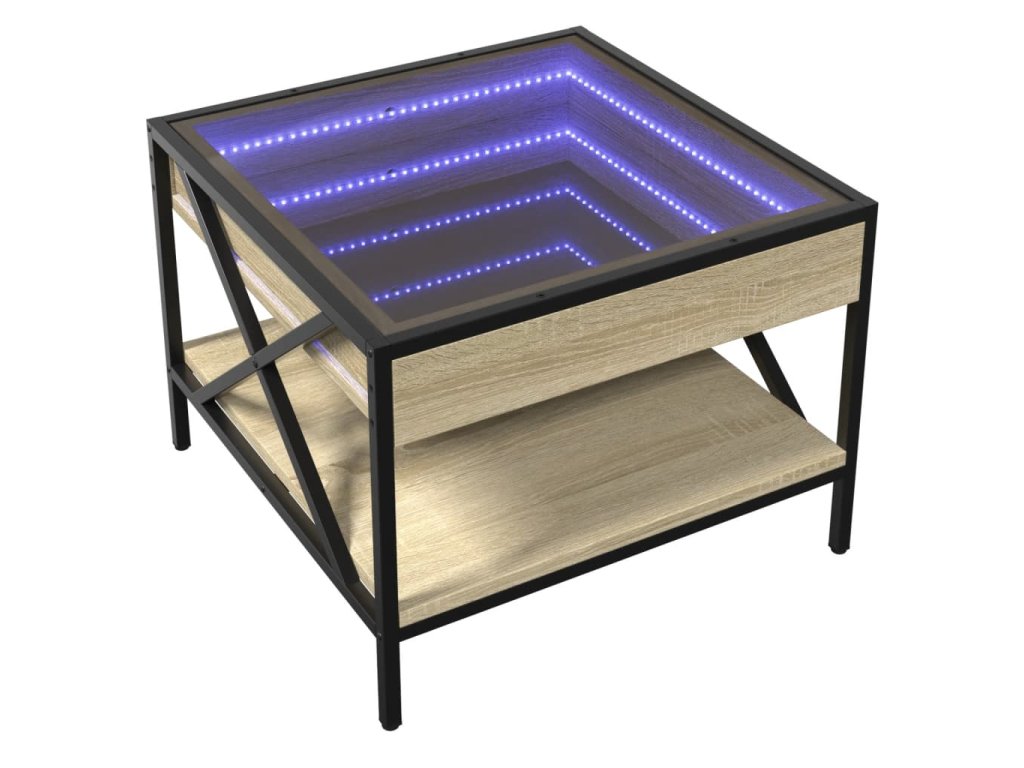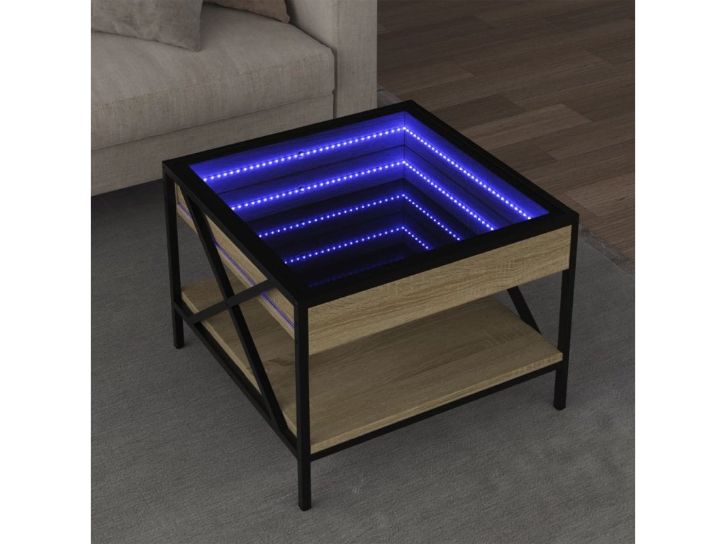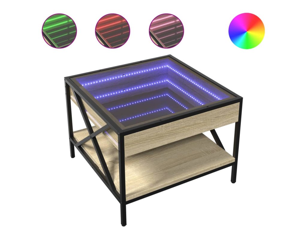 Jedinečný konferenční stolek s infinity LED zrcadlem je vhodný na různá místa.