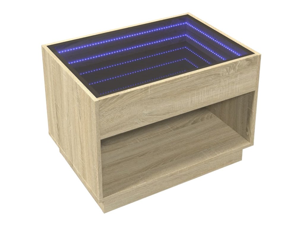 Jedinečný konferenční stolek s infinity LED zrcadlem je vhodný na různá místa.