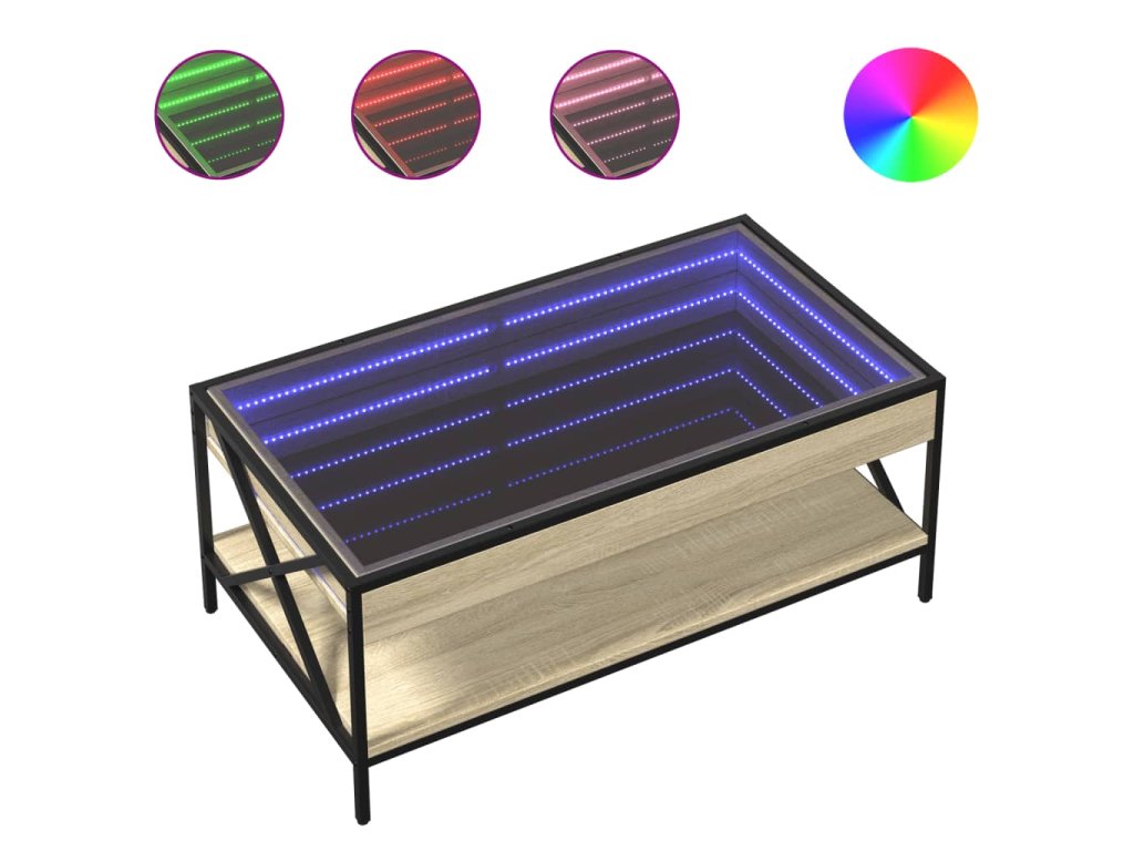 Jedinečný konferenční stolek s infinity LED zrcadlem je vhodný na různá místa.