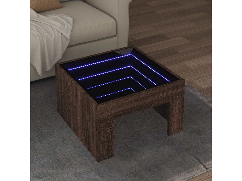 Jedinečný konferenční stolek s infinity LED zrcadlem je vhodný na různá místa.