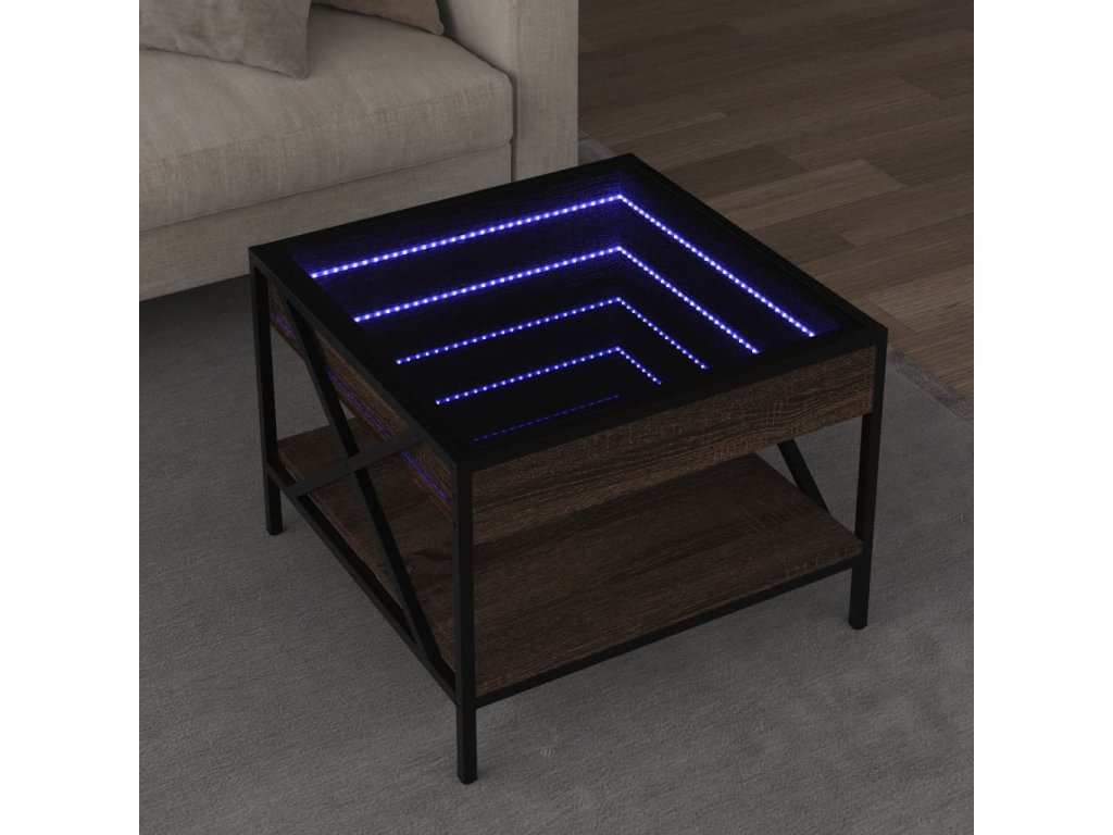 Jedinečný konferenční stolek s infinity LED zrcadlem je vhodný na různá místa.