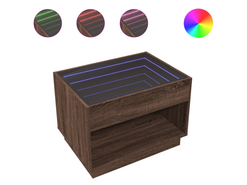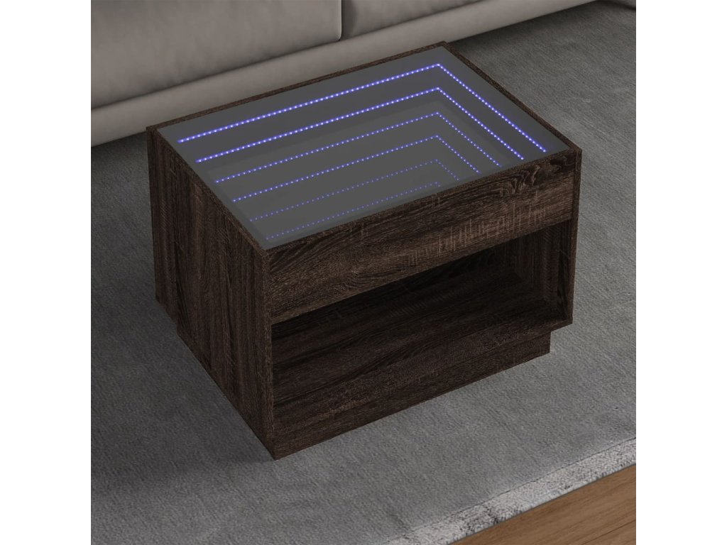 Jedinečný konferenční stolek s infinity LED zrcadlem je vhodný na různá místa.