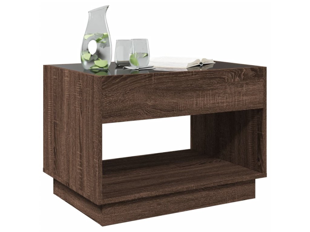 - RGB LED světla pro příjemnou atmosféru: Tento stolek je vybaven LED osvětlením, které lze snadno nastavit a vytvořit tak individuální světelnou atmosféru. Umožňuje přizpůsobit režimy, barvy a jas, abyste si vytvořili příjemnou atmosféru svého interiéru.