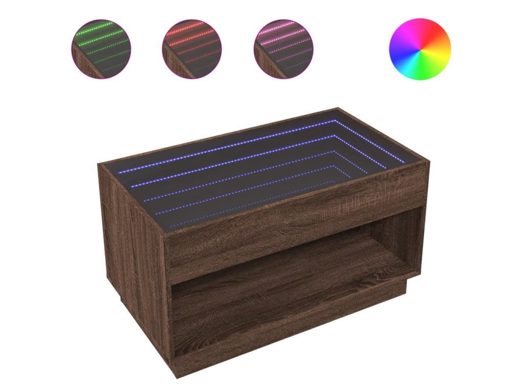 Jedinečný konferenční stolek s infinity LED zrcadlem je vhodný na různá místa.