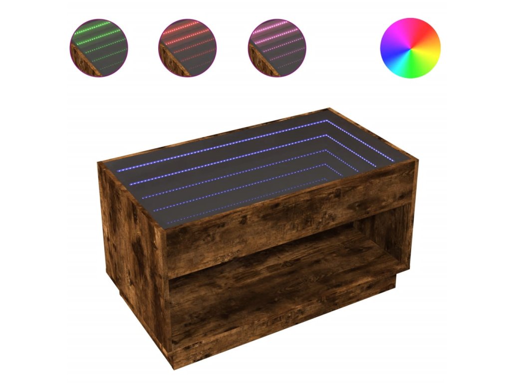 Jedinečný konferenční stolek s infinity LED zrcadlem je vhodný na různá místa.