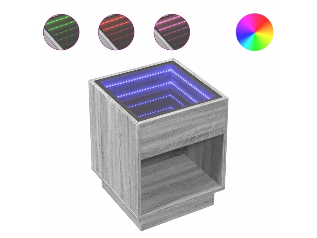 - RGB LED světla pro příjemnou atmosféru: Tento stolek je vybaven LED osvětlením, které lze snadno nastavit a vytvořit tak individuální světelnou atmosféru. Umožňuje přizpůsobit režimy, barvy a jas, abyste si vytvořili příjemnou atmosféru svého interiéru.