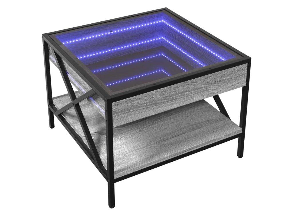 Jedinečný konferenční stolek s infinity LED zrcadlem je vhodný na různá místa.