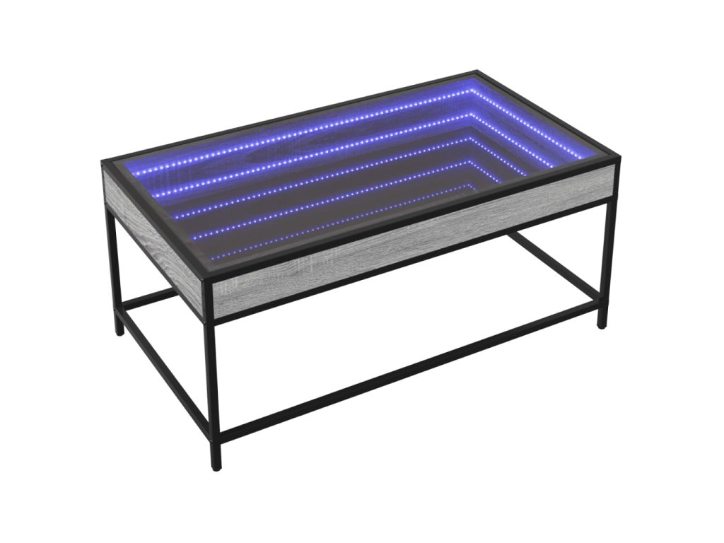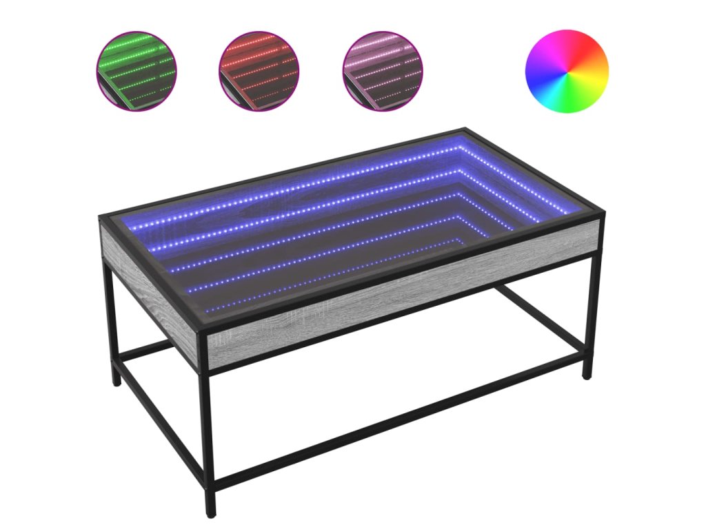 Jedinečný konferenční stolek s infinity LED zrcadlem je vhodný na různá místa.