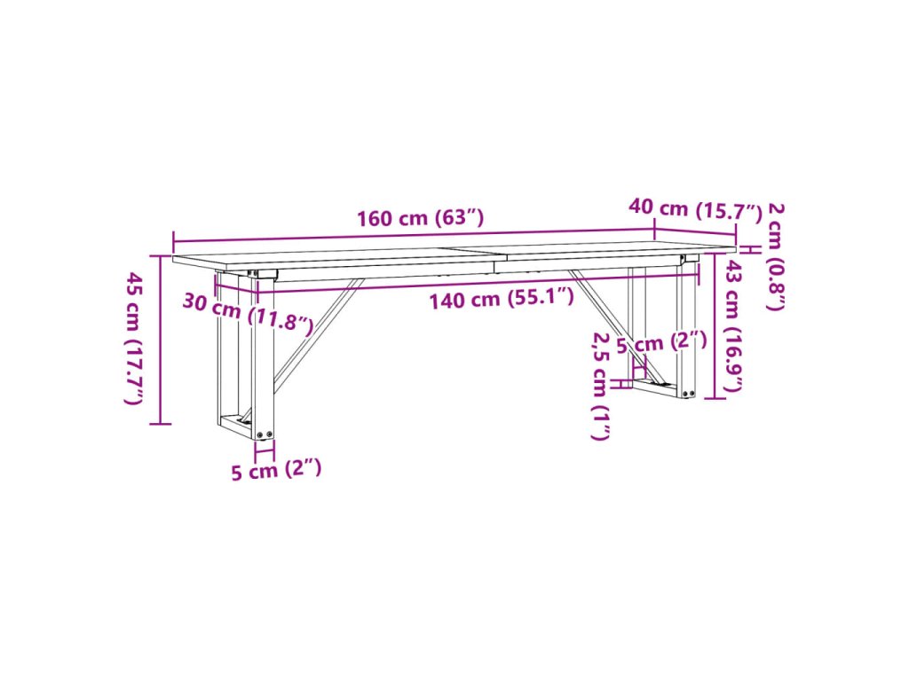 - Rozměry: 160 x 40 x 45 cm (D x Š x V)