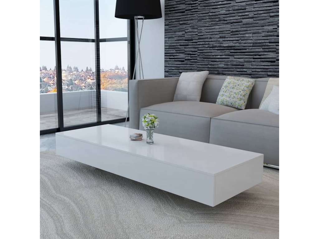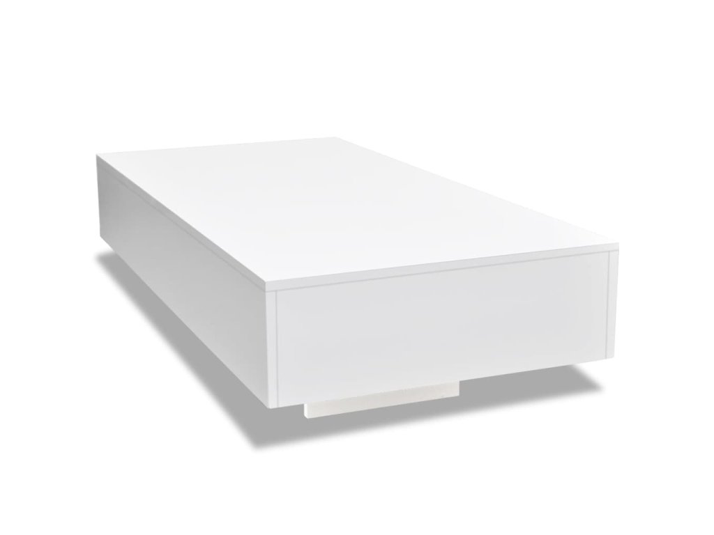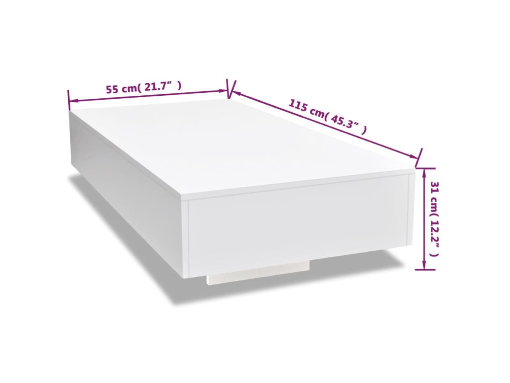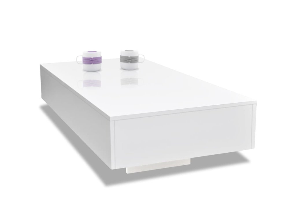 Tento obdélníkový konferenční stolek ve vysoce lesklé bílé barvě má moderní a elegantní vzhled a krásně doplní nábytek ve vašem domě. Může být použit jako konferenční stolek nebo jako odkládací stolek.