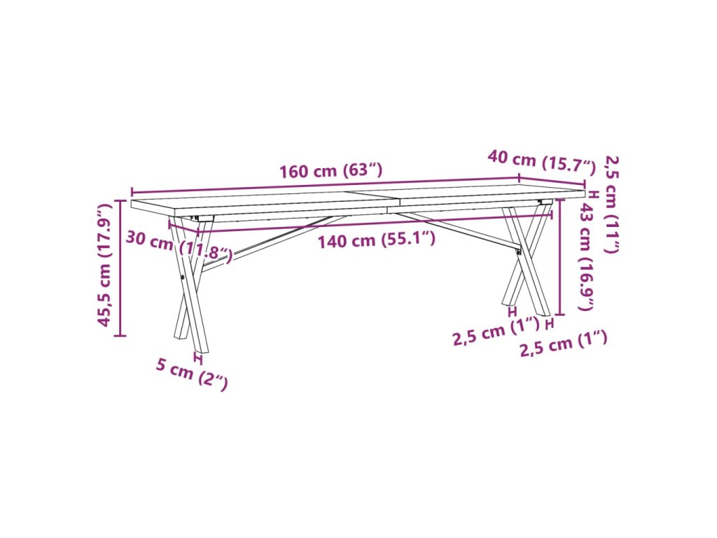 - Rozměry: 160 x 40 x 45,5 cm (D x Š x V)