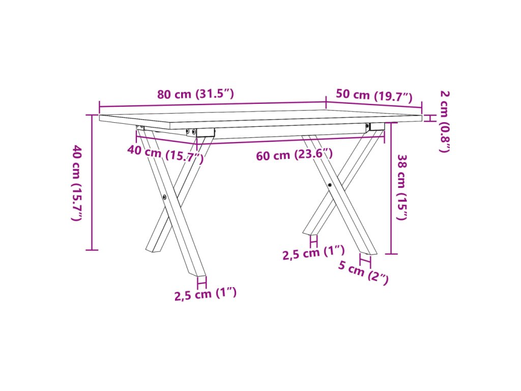 - Pevná a stabilní konstrukce: Stůl má konstrukci ve tvaru písmene X, která zajišťuje stabilitu a bezpečnost.